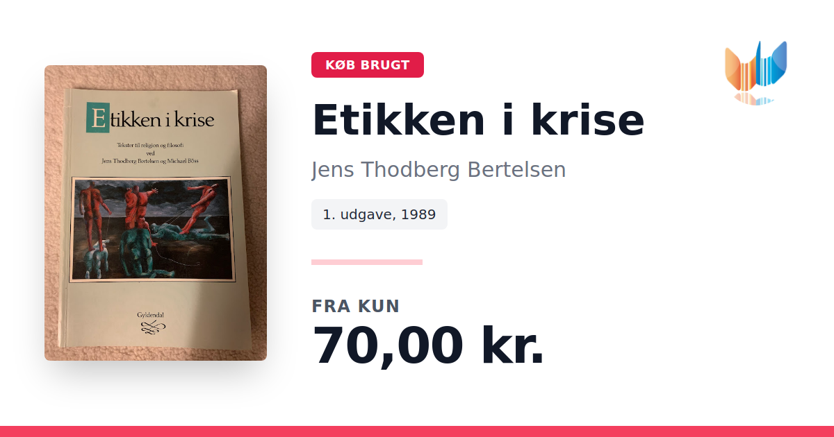 Lige nu kan du købe "Etikken i krise" af Jens Thodberg Bertelsen til kun 70,00 kr. Bogen du ser her er brugt, og i perfekt stand. Vi har i øjeblikket kun et enkelt eksemplar til salg af "Etikken i krise", så slå til mens du kan!