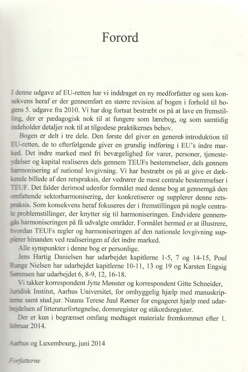 EU-Retten byder på en grundig introduktion til EU-retten med en særlig vægt på EU’s indre marked. I den nye og reviderede 6. udgave præsenteres et omfattende overblik over retspraksis og centrale bestemmelser i TEUF – et værktøj, der både imødekommer de studerendes behov og praktikerens krav. Med en struktureret opbygning, der indledes med et forord, inddeles bogen i tre dele. DEL I fokuserer på institutionerne og retskilderne med kapitler om baggrund, mål, medlemskab, institutioner, lovgivningsprocedurer og domstolskontrol. DEL II behandler den frie bevægelighed med kapitler om diskriminerings- og restriktionsforbud, varers og personers frie bevægelighed, arbejdskraft, etableringsretten, tjenesteydelser og kapital. Endelig dykker DEL III ned i harmoniseringen med udvalgte emner som EU-selskabsret, EU-skatteret, tekniske forskrifter og adgang til uddannelse – alt sammen suppleret med litteraturfortegnelse, domsregister og stikordsregister.