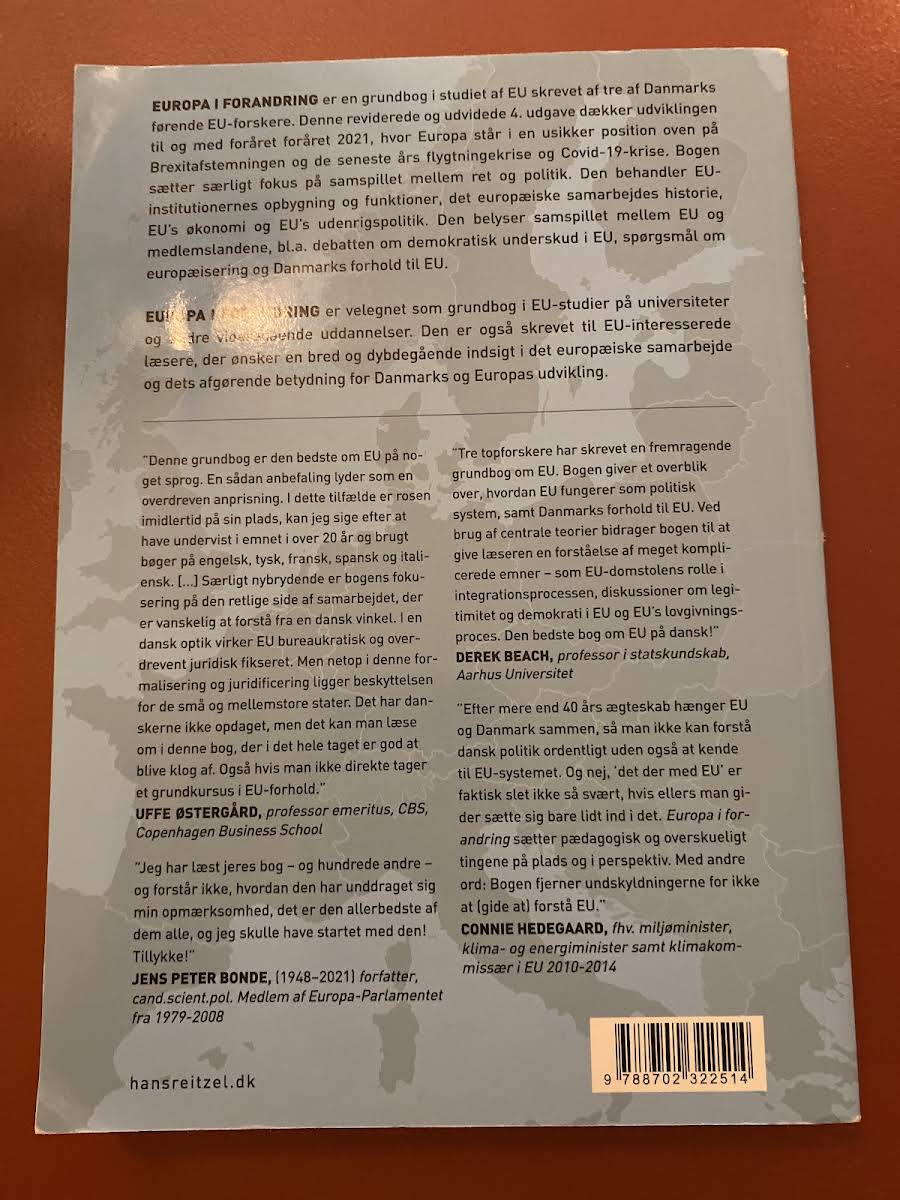 Europa i forandring er en central grundbog til studiet af EU, forfattet af tre af Danmarks førende EU-forskere. I den fjerde udgave, der dækker udviklingen frem til foråret 2021, analyseres de komplekse forandringer, Europa har gennemgået i kølvandet på Brexitafstemningen, flygtningekrisen og de seneste konsekvenser af Covid-19. Bogen lægger vægt på samspillet mellem ret og politik og giver en indgående redegørelse for EU’s institutionelle opbygning, den historiske udvikling i samarbejdet, samt de aktuelle debatter omkring europæiseringen og demokratisk underskud. Den undersøger desuden, hvordan EU’s økonomi og udenrigspolitik påvirker medlemslandenes forhold til unionen. Med sit brede og dybdegående indhold er Europa i forandring et uundværligt redskab for studerende og alle, der ønsker at forstå de politiske og retlige mekanismer, der former Danmarks og Europas fremtid.