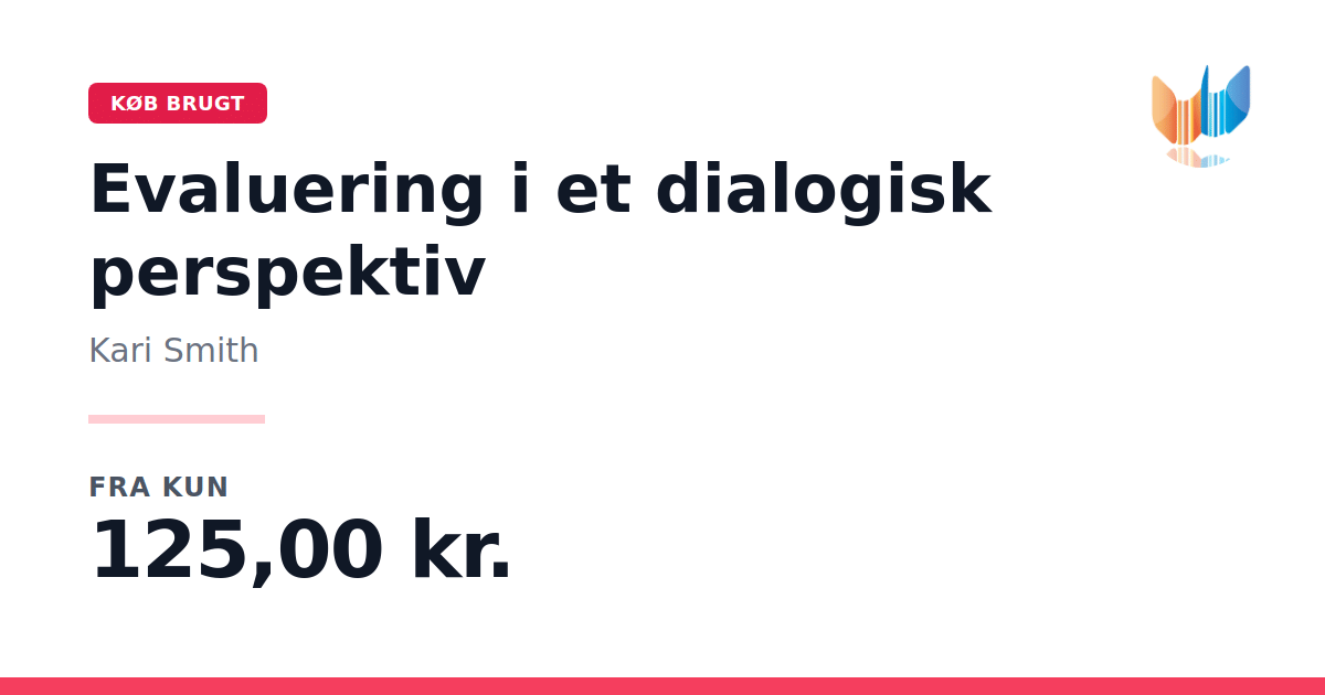 Lige nu kan du købe "Evaluering i et dialogisk perspektiv" af Kari Smith til kun 125,00 kr. Bogen du ser her er brugt, og i perfekt stand. Vi har i øjeblikket kun et enkelt eksemplar til salg af "Evaluering i et dialogisk perspektiv", så slå til mens du kan!
