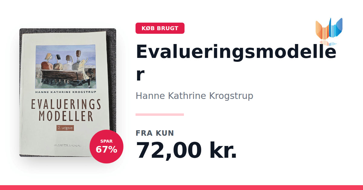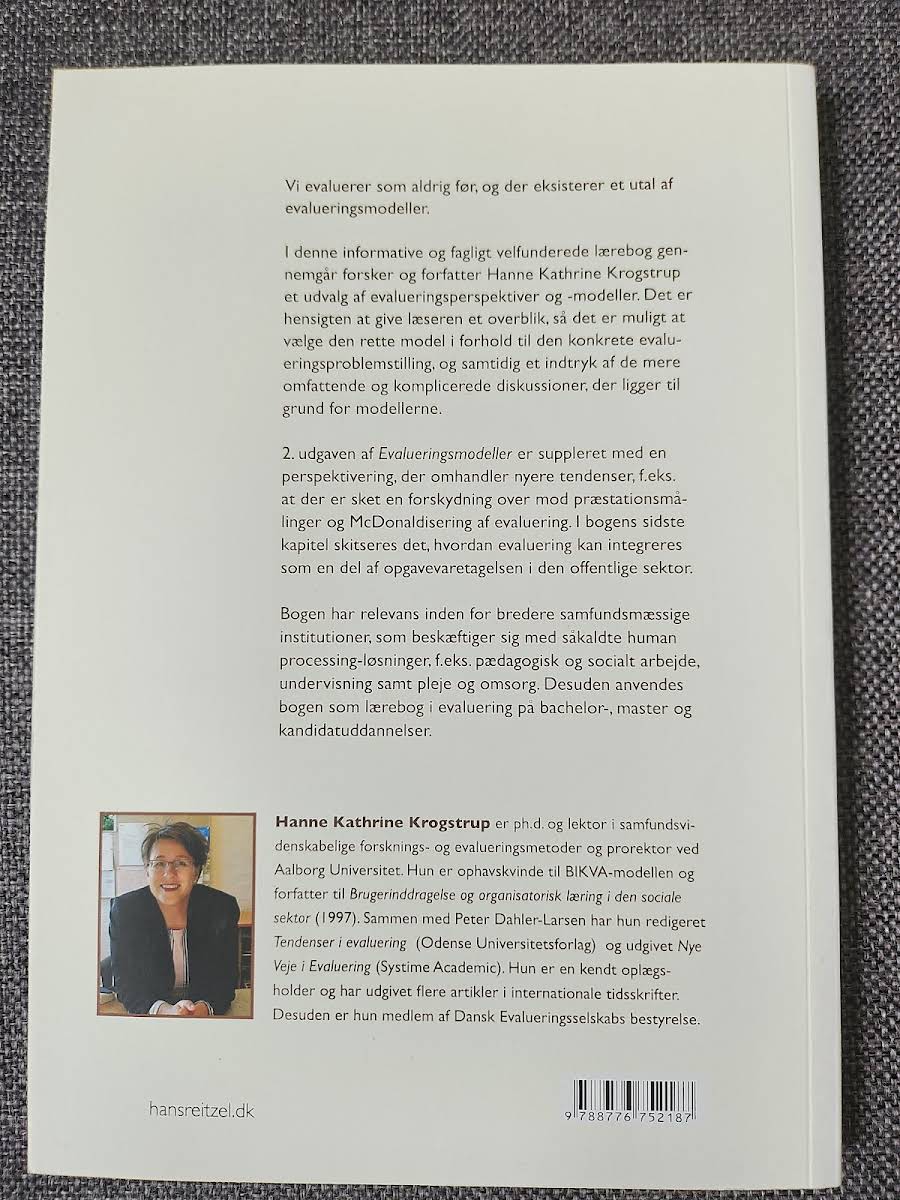 Med "Evalueringsmodeller" tilbyder Hanne Kathrine Krogstrup en indsigtsfuld og systematisk gennemgang af en bred vifte af evalueringsmetoder og -tilgange. Bogen præsenterer de mest anvendte modeller, som kan anvendes til at vurdere alt fra produkter og medarbejdere til specifikke mål, og stiller krav om præcise metoder for at opnå pålidelige resultater. Gennem en kombination af grundlæggende teori og praktiske eksempler illustrerer Krogstrup, hvordan man bedst vælger og anvender den rette evalueringsteknik. Bogen henvender sig til alle, der beskæftiger sig med evaluering i deres daglige arbejde, og byder på et inspirerende indblik i, hvordan man kan skabe en meningsfuld og målrettet evaluering.