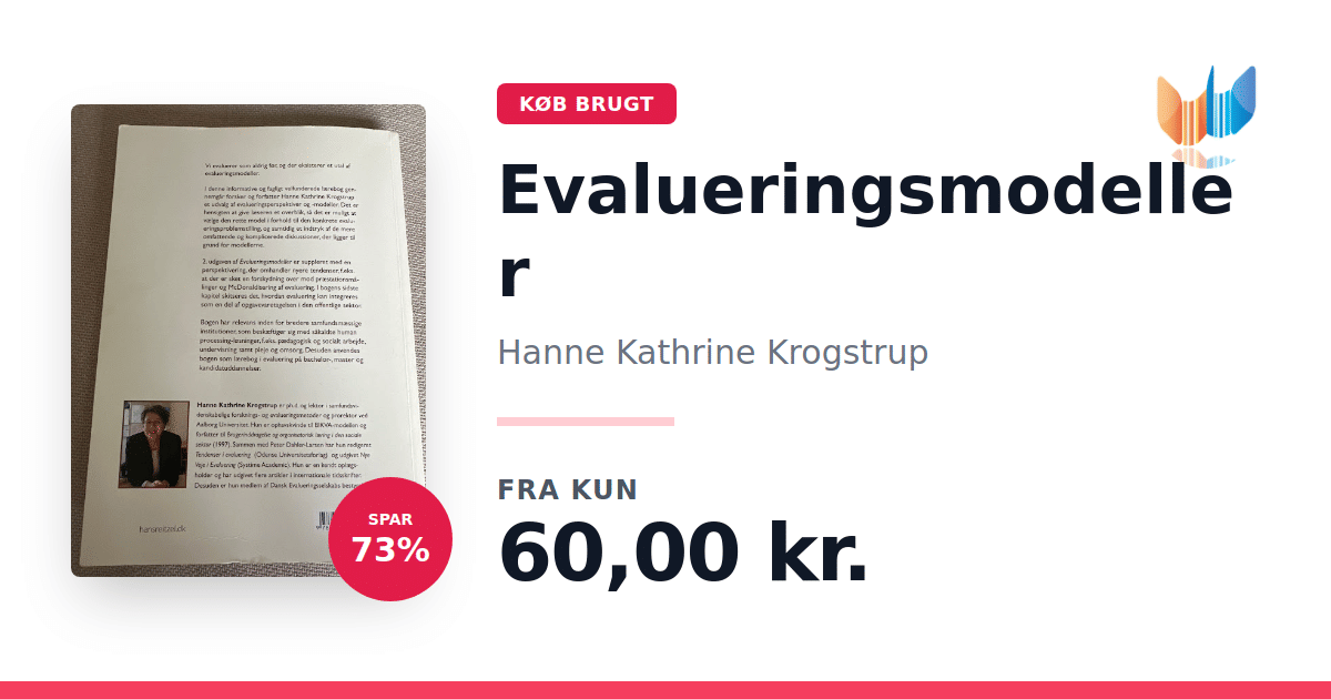 Med "Evalueringsmodeller" tilbyder Hanne Kathrine Krogstrup en indsigtsfuld og systematisk gennemgang af en bred vifte af evalueringsmetoder og -tilgange. Bogen præsenterer de mest anvendte modeller, som kan anvendes til at vurdere alt fra produkter og medarbejdere til specifikke mål, og stiller krav om præcise metoder for at opnå pålidelige resultater. Gennem en kombination af grundlæggende teori og praktiske eksempler illustrerer Krogstrup, hvordan man bedst vælger og anvender den rette evalueringsteknik. Bogen henvender sig til alle, der beskæftiger sig med evaluering i deres daglige arbejde, og byder på et inspirerende indblik i, hvordan man kan skabe en meningsfuld og målrettet evaluering.