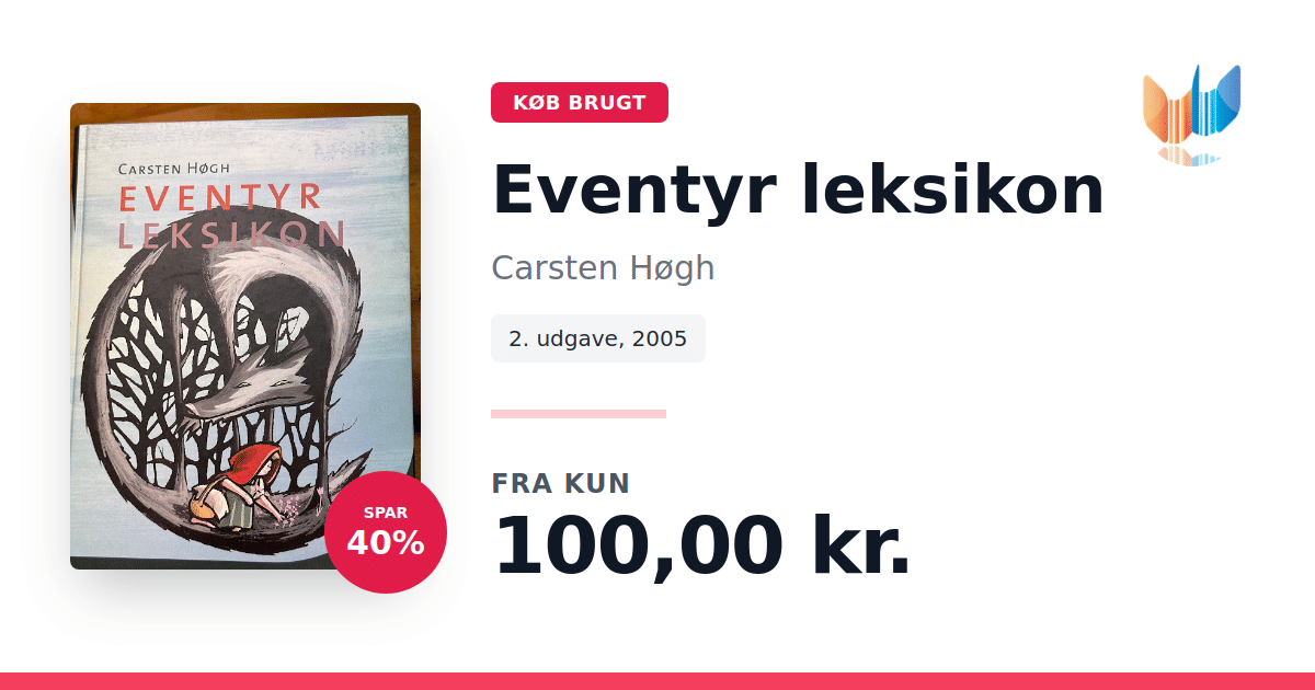 Lige nu kan du købe "Eventyr leksikon" af Carsten Høgh til kun 100,00 kr. Du sparer hele 40% af nyprisen! Bogen du ser her er brugt, og i perfekt stand. Vi har i øjeblikket 2 eksemplarer til salg af "Eventyr leksikon", så husk at se de forskellige udgaver.