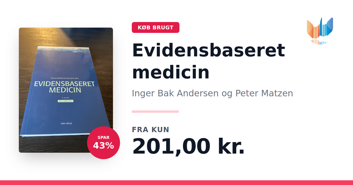 Lige nu kan du købe "Evidensbaseret medicin" af Inger Bak Andersen og Peter Matzen til kun 201,00 kr. Du sparer hele 43% af nyprisen! Bogen du ser her er brugt, og i perfekt stand. Vi har i øjeblikket 3 eksemplarer til salg af "Evidensbaseret medicin", så husk at se de forskellige udgaver.