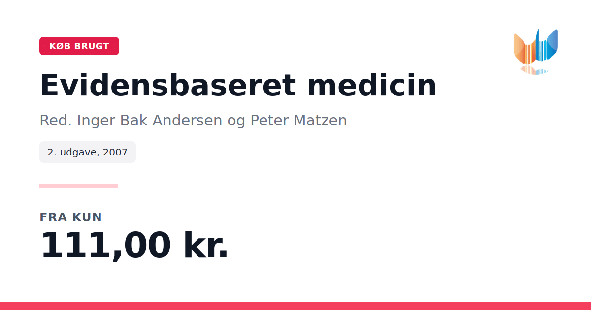 Lige nu kan du købe "Evidensbaseret medicin" af Red. Inger Bak Andersen og Peter Matzen til kun 111,00 kr. Bogen du ser her er brugt, og i perfekt stand. Vi har i øjeblikket kun et enkelt eksemplar til salg af "Evidensbaseret medicin", så slå til mens du kan!
