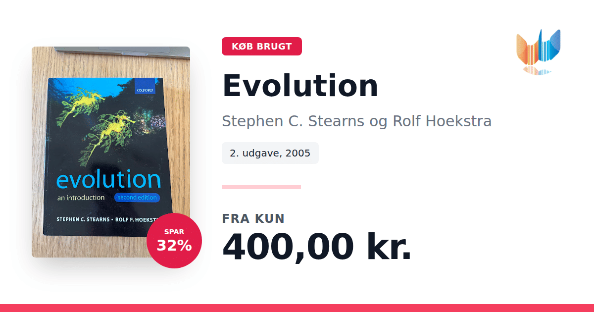 Lige nu kan du købe "Evolution" af Stephen C. Stearns og Rolf Hoekstra til kun 400,00 kr. Du sparer hele 32% af nyprisen! Bogen du ser her er brugt, og i perfekt stand. Vi har i øjeblikket kun et enkelt eksemplar til salg af "Evolution", så slå til mens du kan!