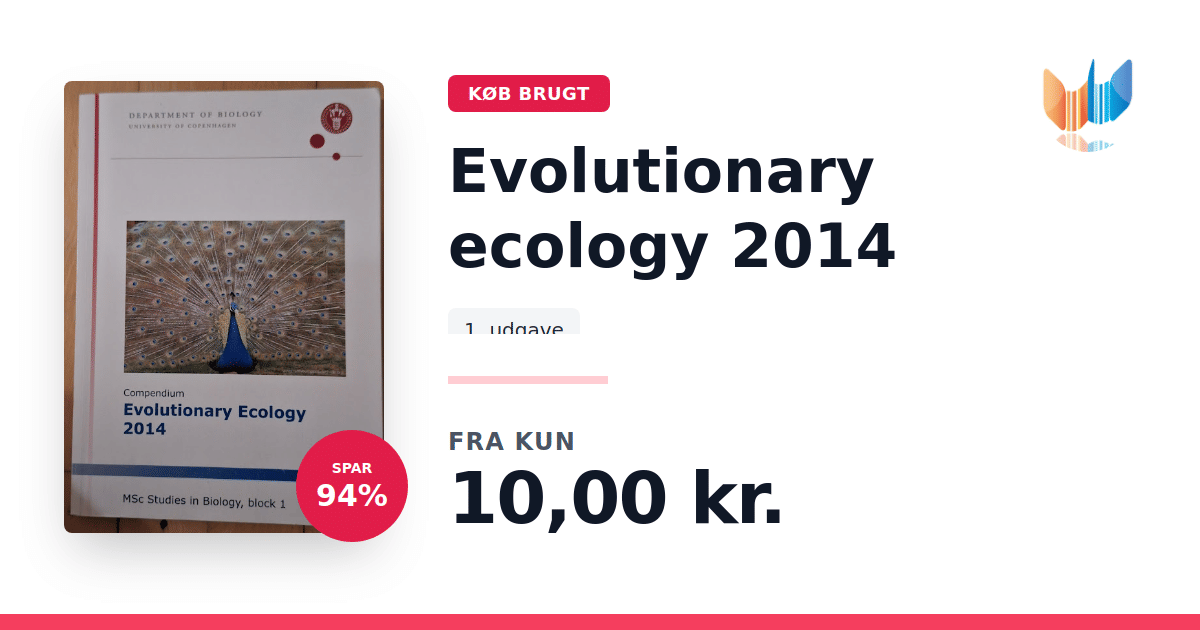 Lige nu kan du købe "Evolutionary ecology 2014" til kun 10,00 kr. Du sparer hele 94% af nyprisen! Bogen du ser her er brugt, og i perfekt stand. Vi har i øjeblikket kun et enkelt eksemplar til salg af "Evolutionary ecology 2014", så slå til mens du kan!