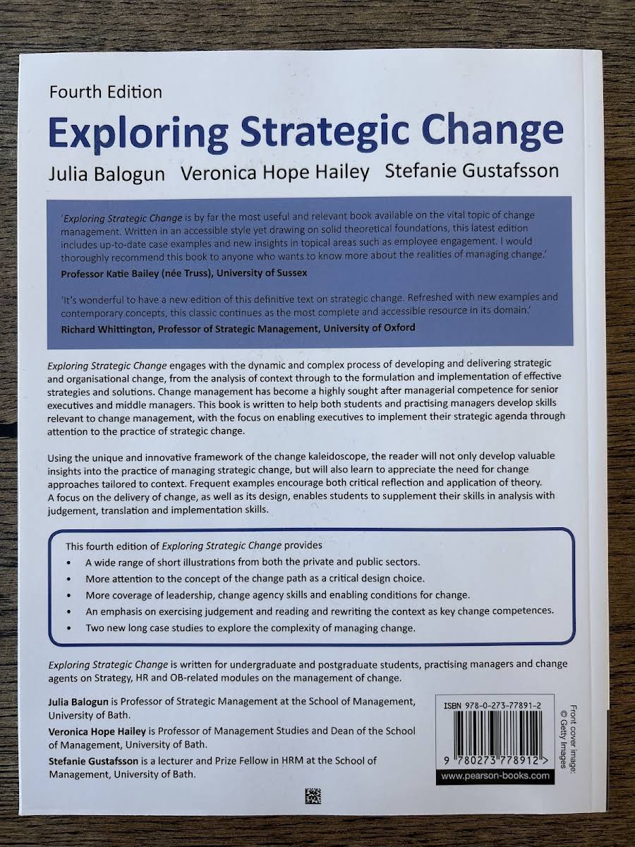• Exploring Strategic Change, Julia Balogun, Veronica Hope Hailey, Stafanie Gustafsson, 9780273778912