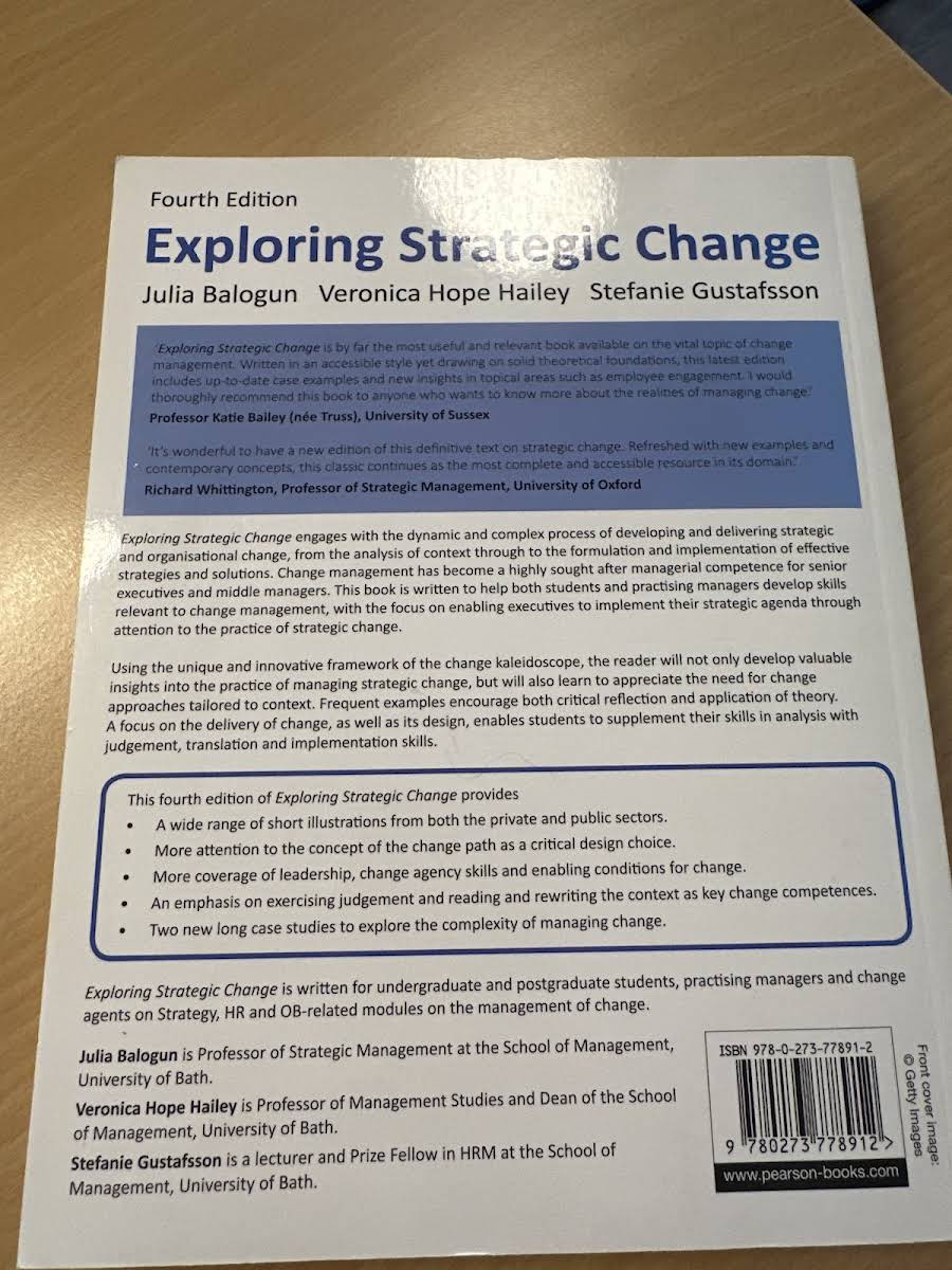 Exploring Strategic Change offers an insightful examination of how strategic and organizational change is conceptualized and implemented. Authored by Julia Balogun, Veronica Hope Hailey, and Stefanie Gustafsson, this book presents a clear, accessible approach to change management, combining robust theoretical frameworks with real-world case examples. Designed for both students and seasoned practitioners, it delves into how leaders can translate strategic intent into actionable change. By employing the innovative change kaleidoscope framework, the book illustrates the importance of context-sensitive approaches in managing change. It explores the dynamic process from initial analysis through to strategy formulation and successful implementation, emphasizing the critical role of judgment and adaptation. With numerous illustrations drawn from various sectors, each discussion encourages reflective thinking and practical application of theory. Published in 2015 by Pearson Education Limited and presented in paperback over 280 pages, Exploring Strategic Change remains a vital resource. Its balanced mix of conceptual depth and practical insights makes it an essential guide for anyone looking to master the challenges and opportunities of strategic change management.
