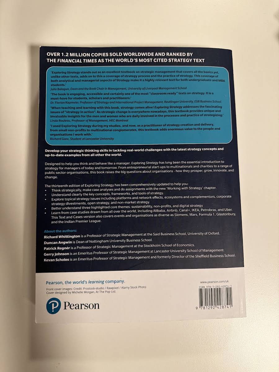 The 13th edition of Exploring Strategy, Text & Cases is an essential resource designed to equip today’s and tomorrow’s managers with the tools to understand and shape strategic thinking. Authored by Richard Whittington, Patrick Regnér, Duncan Angwin, Gerry Johnson, and Kevan Scholes, this updated edition delves into the pivotal questions of how organizations prosper, grow, innovate, and adapt in an ever-changing environment. Revised to reflect the latest developments in the field, the text bridges the gap between theory and practice by integrating a wealth of case studies that illuminate real-world challenges. Covering a diverse range of organizations - from entrepreneurial start-ups and multinationals to charities and governmental agencies - the book offers readers a comprehensive perspective on the evolving nature of strategic management. New to this edition is the chapter "Working with Strategy," which guides readers through advanced case analysis and strategic assignments. In addition, the text highlights three core themes: sustainability, non-profits, and digital strategy. Through engaging case studies featuring renowned global organizations such as Alibaba, Airbnb, Amazon, Alphabet, IKEA, and Uber, alongside insights into events and entities like Siemens, Mars, Formula 1, Glastonbury, and the Indian Premier League, this edition invites you to explore strategy in its dynamic, real-world context.
