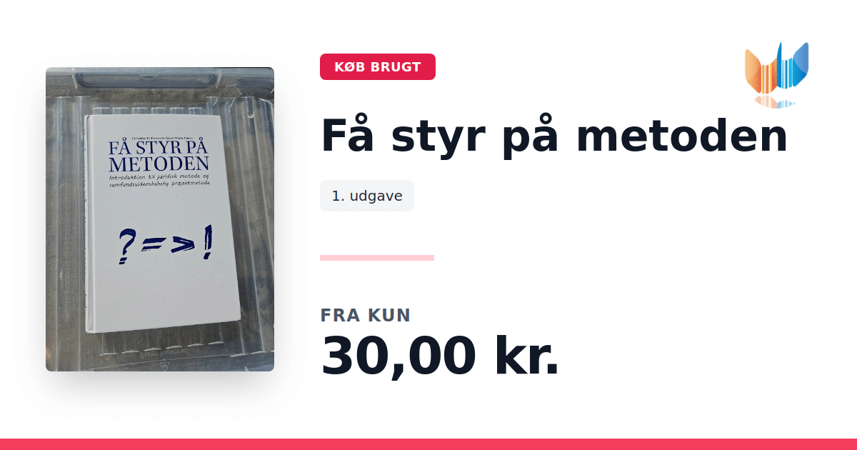Få styr på metoden giver læseren en grundig introduktion til både juridisk metode og samfundsvidenskabelig projektmetode. Bogen præsenterer et systematisk overblik over juraens grundelementer med særlig fokus på retskilder, den retsdogmatiske metode samt processen bag lovgivning og retspraksis. Derudover belyser bogen de væsentlige aspekter af tværfaglige projekter, hvor jura og økonomi indgår, og giver klare retningslinjer for problemformulering, afgrænsning og valg af metode. Med sit pædagogiske sprog henvender bogen sig både til studerende og andre med interesse for juridiske og samfundsvidenskabelige metoder.