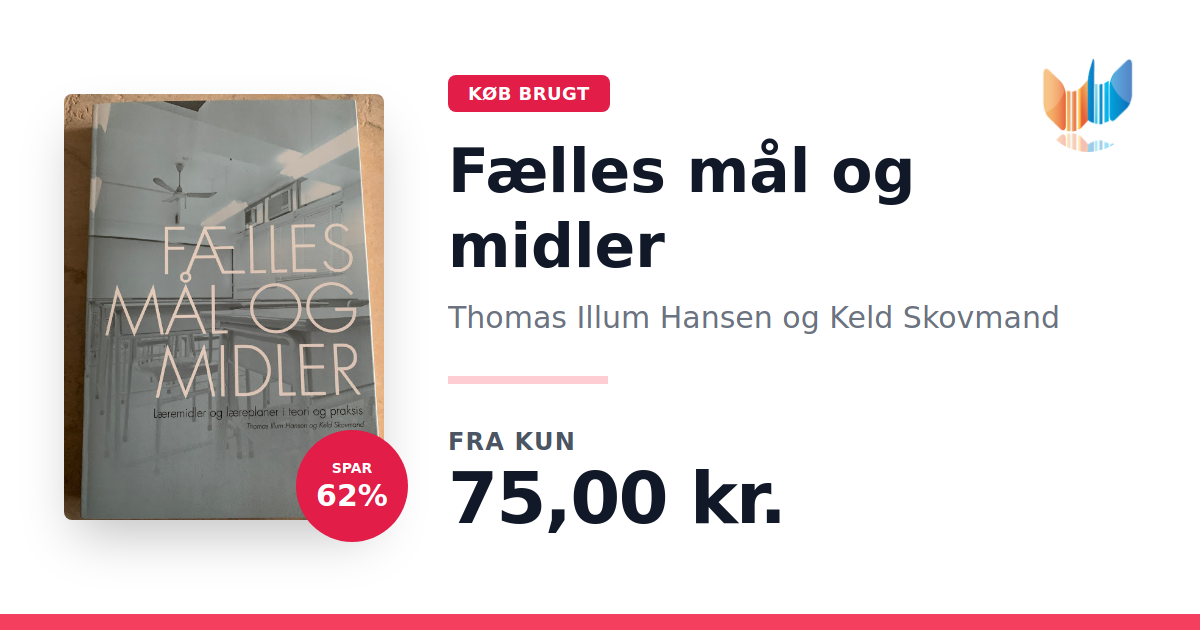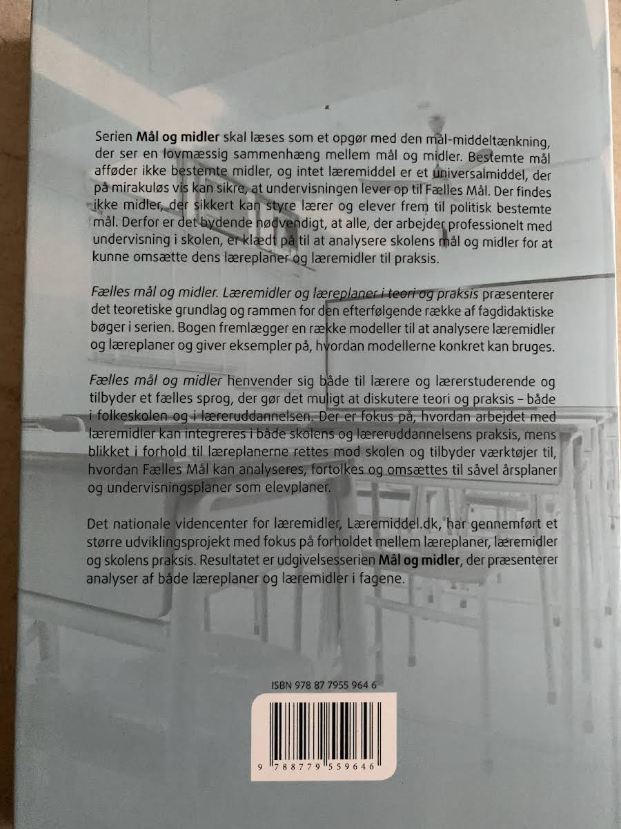 Fælles mål og midler – læremidler og læreplaner i teori og praksis af Thomas Illum Hansen og Keld Skovmand tilbyder et solidt teoretisk fundament, der inviterer både lærere og lærerstuderende til en dybdegående undersøgelse af forholdet mellem mål og midler i undervisningen. Bogen udfolder en række modeller, der gør det muligt at analysere og fortolke både læremidler og læreplaner ud fra konkrete eksempler. Med fokus på, hvordan teoretiske overvejelser kan omsættes til praksis, fremhæves nødvendigheden af at have et fælles sprog til diskussion af pædagogiske mål og metoder. Ved at belyse, at bestemte mål ikke nødvendigvis afføder bestemte midler, rummer bogen redskaber til kritisk refleksion, der kan bidrage til en mere nuanceret tilgang til både undervisning og planlægning. Dette værk er en væsentlig ressource for alle, der søger at forstå og udvikle samspillet mellem pædagogiske intentioner og praktiske metoder i skolen, og det understøtter en vedvarende debat om, hvordan Fælles Mål omsættes til konkrete læringsforløb.