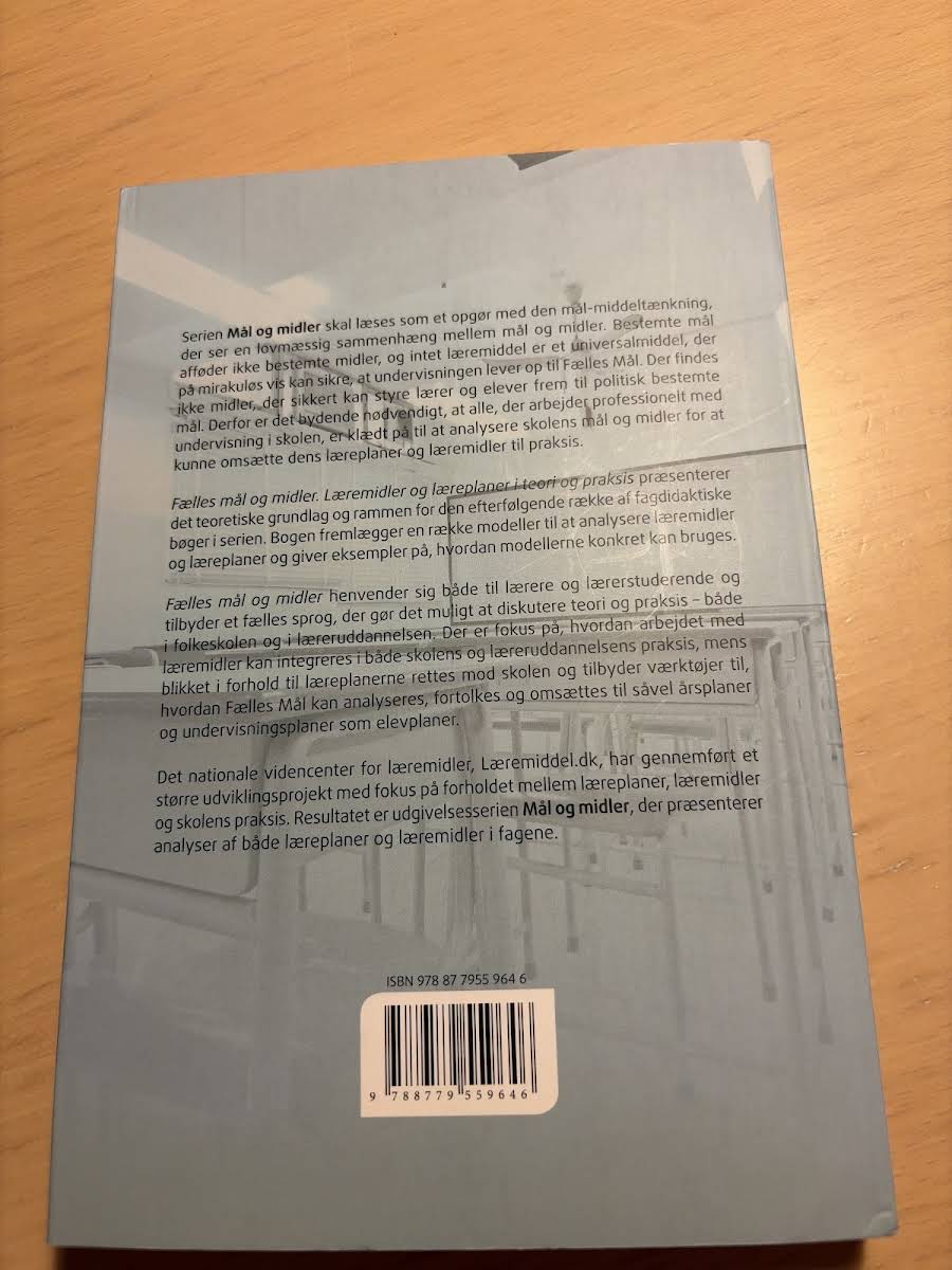 Fælles mål og midler – læremidler og læreplaner i teori og praksis af Thomas Illum Hansen og Keld Skovmand tilbyder et solidt teoretisk fundament, der inviterer både lærere og lærerstuderende til en dybdegående undersøgelse af forholdet mellem mål og midler i undervisningen. Bogen udfolder en række modeller, der gør det muligt at analysere og fortolke både læremidler og læreplaner ud fra konkrete eksempler. Med fokus på, hvordan teoretiske overvejelser kan omsættes til praksis, fremhæves nødvendigheden af at have et fælles sprog til diskussion af pædagogiske mål og metoder. Ved at belyse, at bestemte mål ikke nødvendigvis afføder bestemte midler, rummer bogen redskaber til kritisk refleksion, der kan bidrage til en mere nuanceret tilgang til både undervisning og planlægning. Dette værk er en væsentlig ressource for alle, der søger at forstå og udvikle samspillet mellem pædagogiske intentioner og praktiske metoder i skolen, og det understøtter en vedvarende debat om, hvordan Fælles Mål omsættes til konkrete læringsforløb.