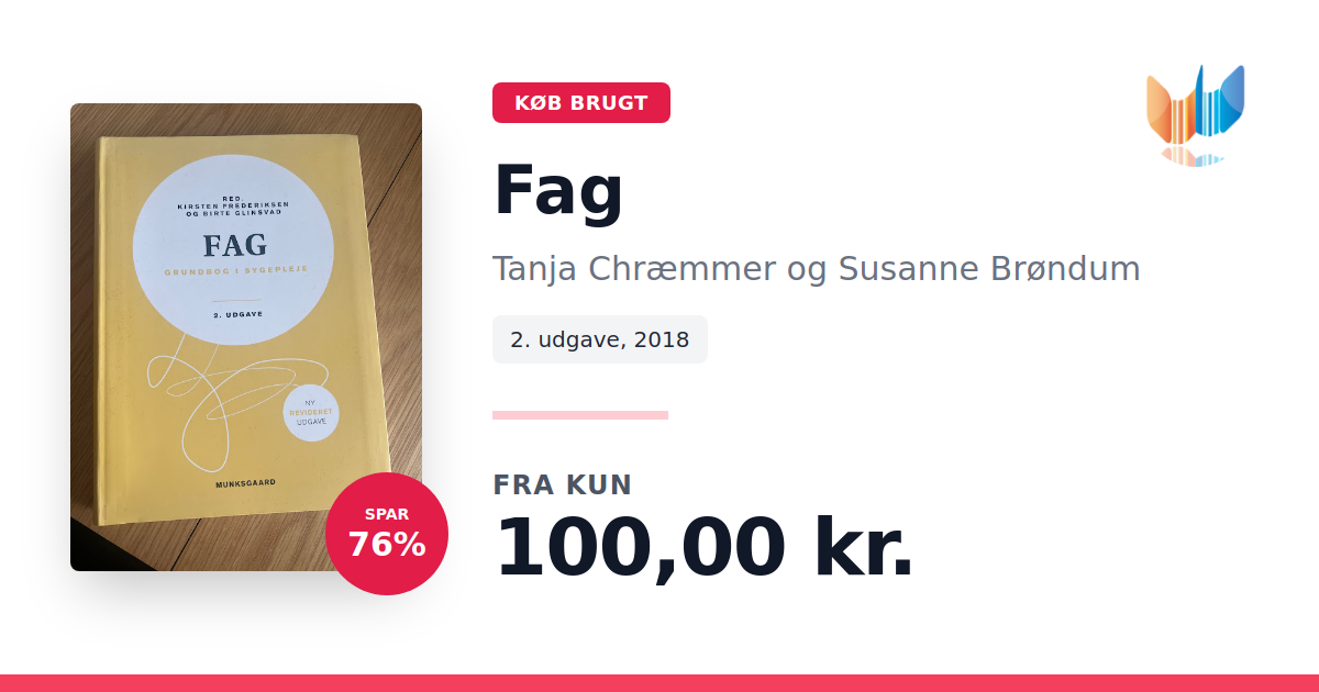 Lige nu kan du købe "Fag" af Tanja Chræmmer og Susanne Brøndum til kun 100,00 kr. Du sparer hele 76% af nyprisen! Bogen du ser her er brugt, og i god stand. Vi har i øjeblikket 6 eksemplarer til salg af "Fag", så husk at se de forskellige udgaver.