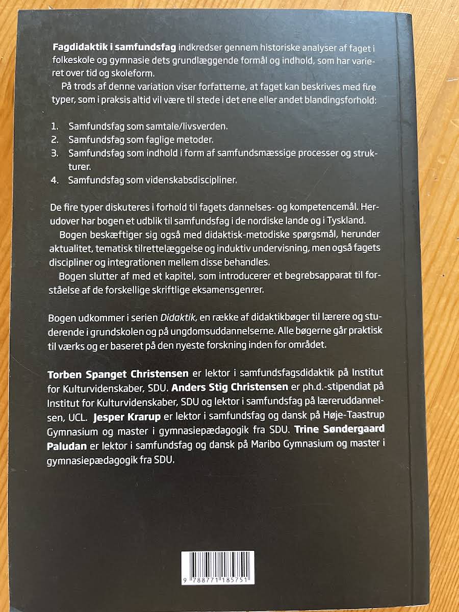 "Fagdidaktik i samfundsfag" præsenterer en samlet introduktion og analyse af samfundsfagets formål og didaktiske potentiale. Gennem omhyggelige, historiske analyser af fagets udvikling i folkeskole- og gymnasiekontekst belyser bogen de mange facetter af samfundsfaget og dets plads i undervisningen i både grundskolen og på ungdomsuddannelserne. Bogen udforsker, hvordan samfundsfaget kan opdeles i fire centrale funktioner: som en del af livsverdenen, som en kilde til faglige metoder, som udtryk for samfundsmæssige strukturer og processer samt som en videnskabelig disciplin. Hvert aspekt diskuteres nøje i forhold til de dannelses- og kompetencemål, der præger faget, og giver dermed en inspirerende tilgang til den fagdidaktiske praksis. Redaktionen, med Torben Spanget Christensen ved roret, formår at kombinere teoretiske indsigter med praktiske perspektiver og præsenterer en robust ramme for samfundsfagsundervisningen. Denne tekstsamling er et uundværligt redskab for undervisere, der ønsker at styrke deres didaktiske tilgang til faget.