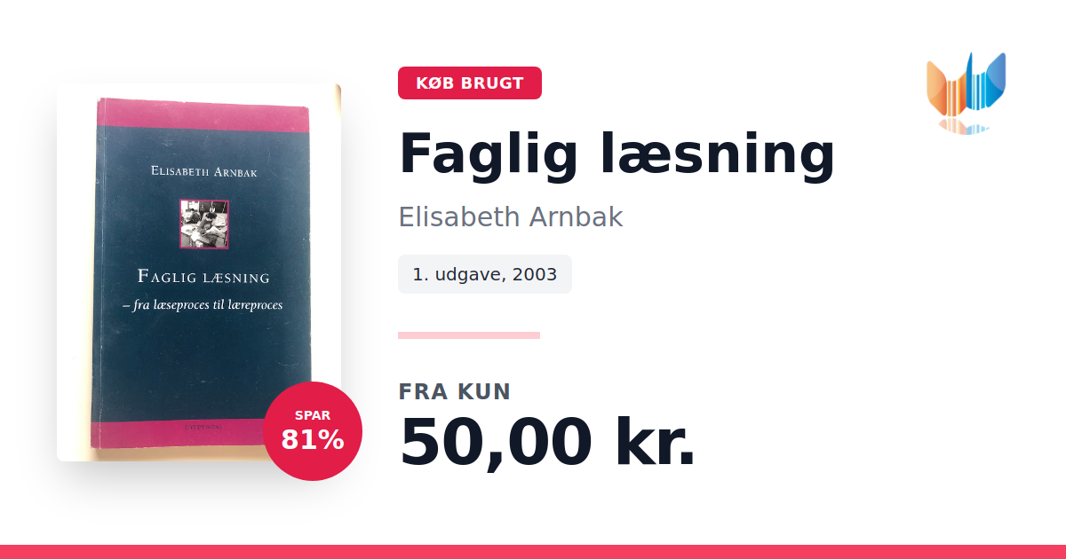 Lige nu kan du købe "Faglig læsning" af Elisabeth Arnbak til kun 50,00 kr. Du sparer hele 81% af nyprisen! Bogen du ser her er brugt, og i god stand. Vi har i øjeblikket 4 eksemplarer til salg af "Faglig læsning", så husk at se de forskellige udgaver.