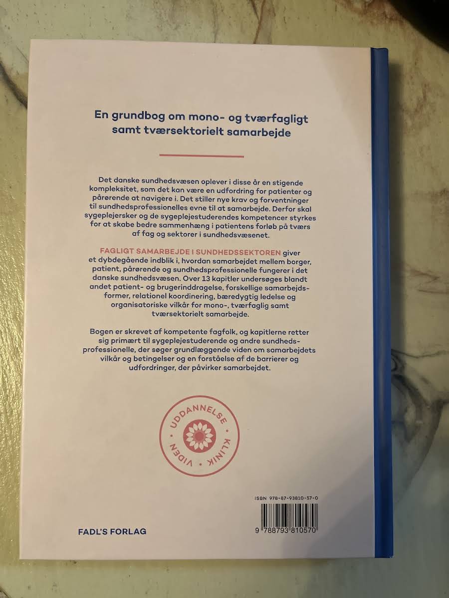 Fagligt samarbejde i sundhedssektoren - Grundbog i sygepleje giver et nuanceret indblik i, hvordan mono-, tværfagligt og tværsektorielt samarbejde udfolder sig i det danske sundhedsvæsen. I en tid med stigende kompleksitet stilles der større krav til sundhedsprofessionelles evne til at koordinere indsatser og sikre sammenhæng i patienternes forløb. Redigeret af Ditte Høgsgaard og skrevet af erfarne fagfolk, udforsker bogen over 13 kapitler centrale temaer som patient- og brugerinddragelse, forskellige former for samarbejde, relationel koordinering og bæredygtig ledelse. Desuden belyses de organisatoriske vilkår, der påvirker samarbejdet på tværs af faggrupper og sektorer. Målgruppen er primært sygeplejestuderende og andre sundhedsprofessionelle, som ønsker en grundlæggende forståelse af samarbejdets betingelser, barrierer og udfordringer. Med sine 256 sider fungerer bogen som en grundlæggende introduktion til de mange facetter af fagligt samarbejde i sundhedssektoren.