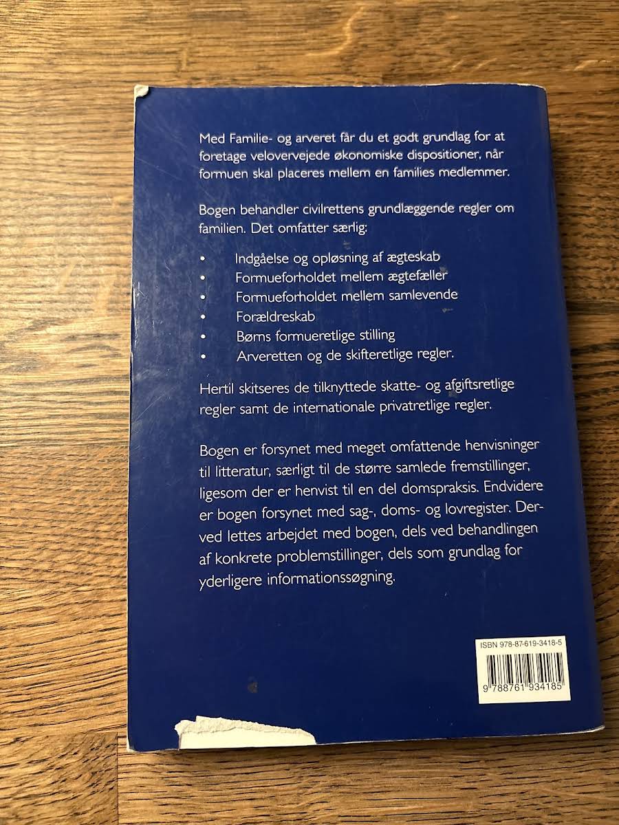 Familie- og arveret giver et overskueligt og grundigt indblik i de centrale regler inden for civilrettens familie- og arveretlige område. Bogen redegør for de grundlæggende principper, der gælder for, hvordan formuen placeres mellem familiemedlemmer, og den skaber et solidt grundlag for at træffe velinformerede økonomiske beslutninger. I denne ottende udgave får du en opdateret gennemgang af temaer som indgåelse og opløsning af ægteskab, fordeling af formuen mellem ægtefæller og samlevende, og de særlige regler, der finder anvendelse for forældreskab og børns økonomiske forhold. Der lægges desuden vægt på arveretten og de praksisnære skifteregler med medfølgende henvisninger til domspraksis og lovgivning. Med fokus på de seneste lovændringer – herunder muligheden for ægteskab mellem personer af samme køn, ændrede skilsmissebetingelser samt nye regler for ægtefælleskifte og status som medmor fra december 2013 – er bogen et uvurderligt redskab for advokater, revisorer og andre praktikere, der beskæftiger sig med familie- og arveret.