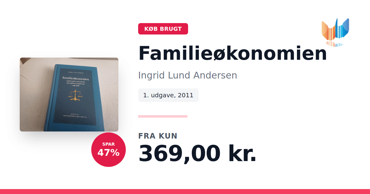 Lige nu kan du købe "Familieøkonomien" af Ingrid Lund Andersen til kun 369,00 kr. Du sparer hele 51% af nyprisen! Bogen du ser her er brugt, og i perfekt stand. Vi har i øjeblikket kun et enkelt eksemplar til salg af "Familieøkonomien", så slå til mens du kan!