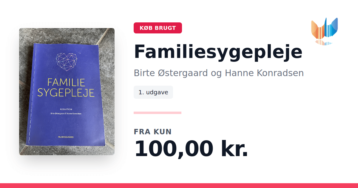 Lige nu kan du købe "Familiesygepleje" af Birte Østergaard og Hanne Konradsen til kun 100,00 kr. Bogen du ser her er brugt, og i god stand. Vi har i øjeblikket kun et enkelt eksemplar til salg af "Familiesygepleje", så slå til mens du kan!