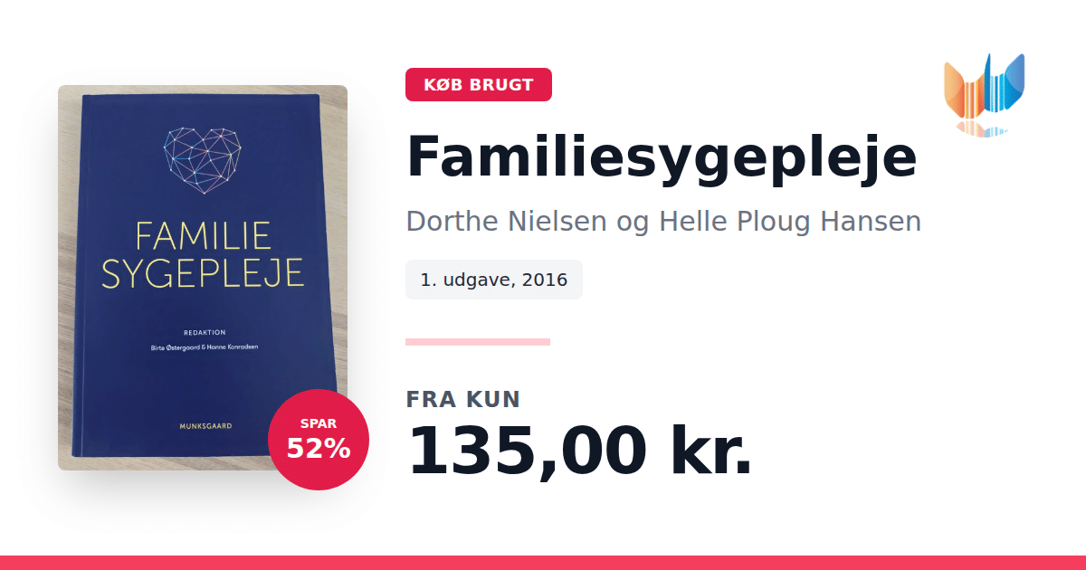 Lige nu kan du købe "Familiesygepleje" af Dorthe Nielsen og Helle Ploug Hansen til kun 135,00 kr. Du sparer hele 52% af nyprisen! Bogen du ser her er brugt, og i god stand. Vi har i øjeblikket kun et enkelt eksemplar til salg af "Familiesygepleje", så slå til mens du kan!