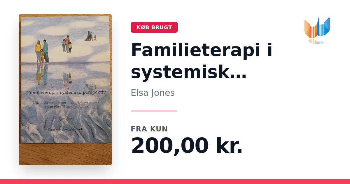 Lige nu kan du købe "Familieterapi i systemisk perspektiv" af Elsa Jones til kun 200,00 kr. Bogen du ser her er brugt, og i perfekt stand. Vi har i øjeblikket kun et enkelt eksemplar til salg af "Familieterapi i systemisk perspektiv", så slå til mens du kan!