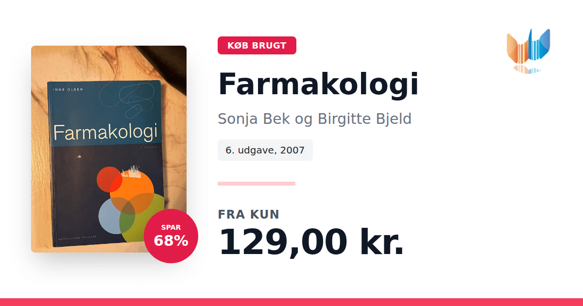Lige nu kan du købe "Farmakologi" af Sonja Bek og Birgitte Bjeld til kun 129,00 kr. Du sparer hele 68% af nyprisen! Bogen du ser her er brugt, og i god stand. Vi har i øjeblikket 5 eksemplarer til salg af "Farmakologi", så husk at se de forskellige udgaver.