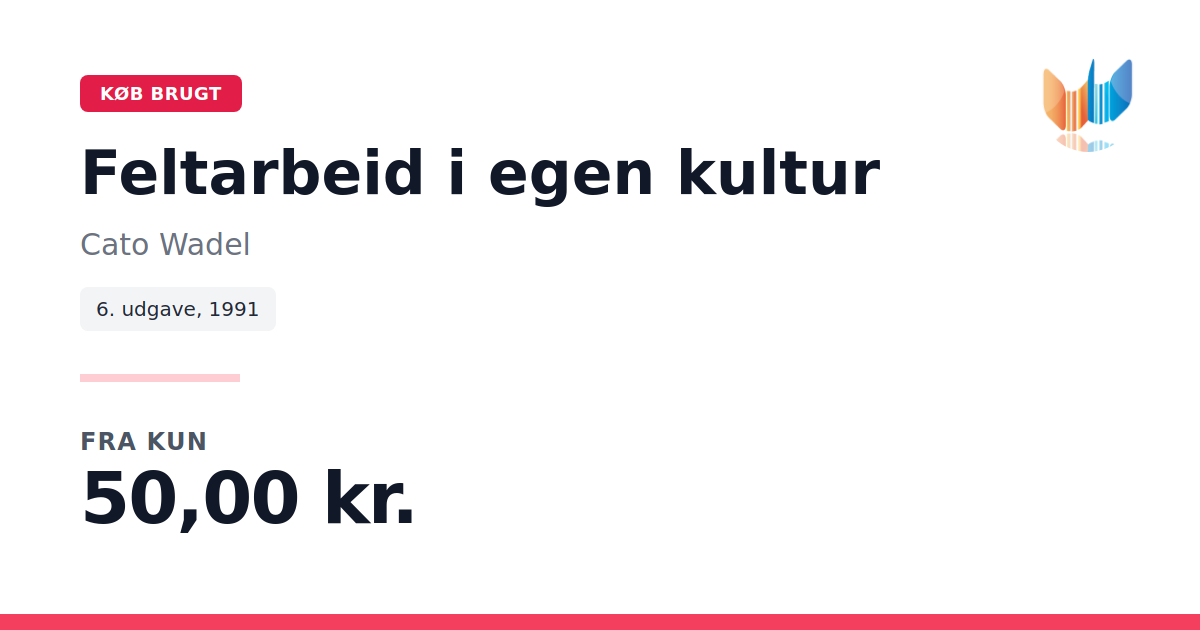 Lige nu kan du købe "Feltarbeid i egen kultur" af Cato Wadel til kun 50,00 kr. Du sparer hele 89% af nyprisen! Bogen du ser her er brugt, og i perfekt stand. Vi har i øjeblikket kun et enkelt eksemplar til salg af "Feltarbeid i egen kultur", så slå til mens du kan!