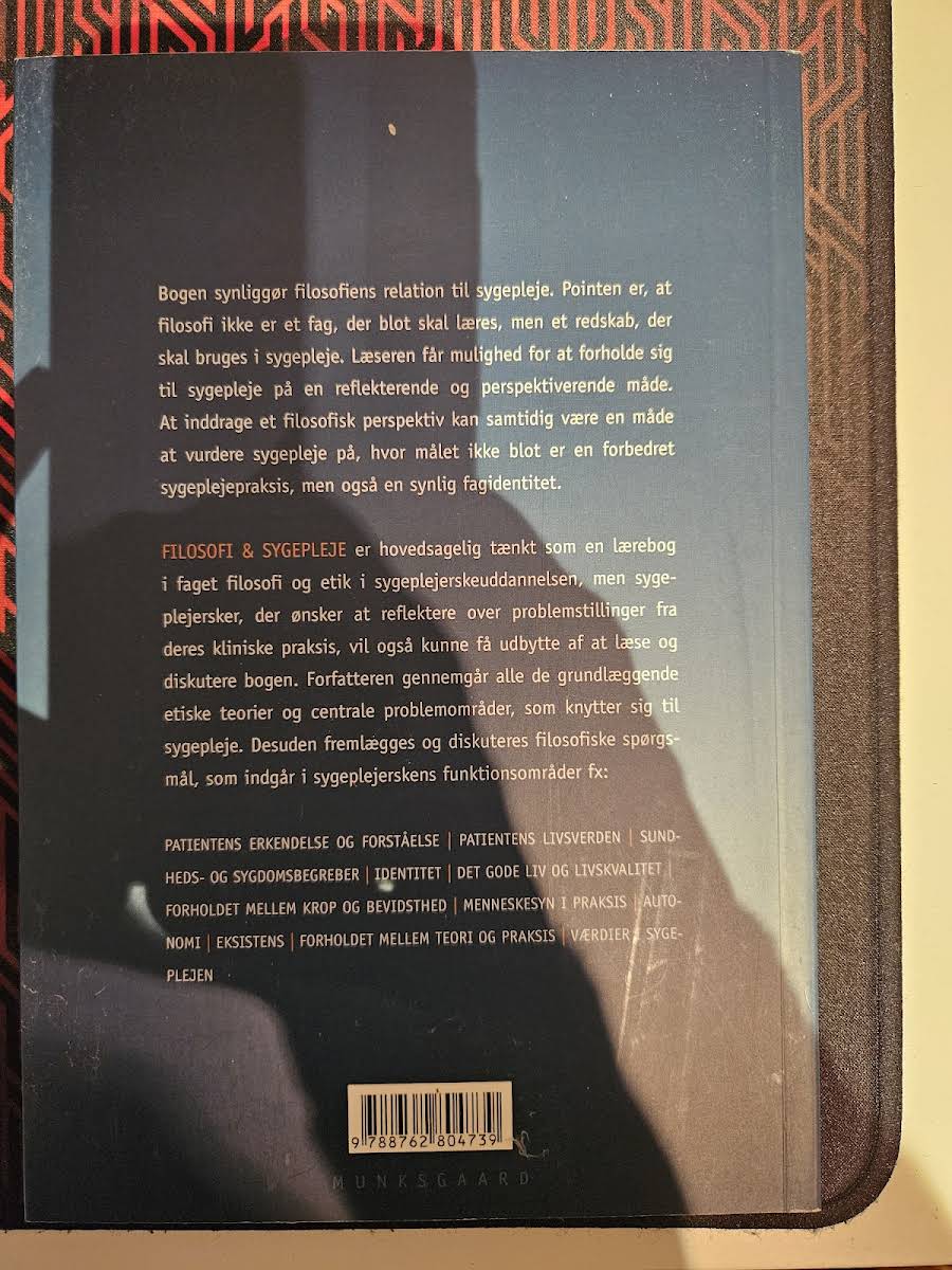 "Filosofi & sygepleje" udforsker, hvordan filosofiske perspektiver kan berige og udfordre den praktiske sygepleje. Bogen understreger, at filosofi ikke blot er et teoretisk fag, men et redskab, der aktivt kan anvendes i sygeplejepraksis. Med et solidt overblik over de grundlæggende etiske teorier og centrale problemstillinger inden for sygepleje, opfordres læseren til at reflektere over, hvad der præger den professionelle identitet. Forfatteren, Jacob Birkler, præsenterer en række væsentlige filosofiske og etiske emner, som blandt andet omhandler patientens livsverden, sundheds- og sygdomsbegreber samt forholdet mellem teori og praksis. Designet til at fungere som en lærebog i faget "Filosofi og etik" for sygeplejestuderende, rummer bogen også perspektiver, der er relevante for den erfarne sygeplejerske, der ønsker at opnå en dybere forståelse af sit fag. Udgivet i 2003 af Munksgaard og præsenteret i et håndgribeligt paperbackformat, giver "Filosofi & sygepleje" et inspirerende indblik i, hvordan filosofien kan forme og forny sygeplejeprofessionen.