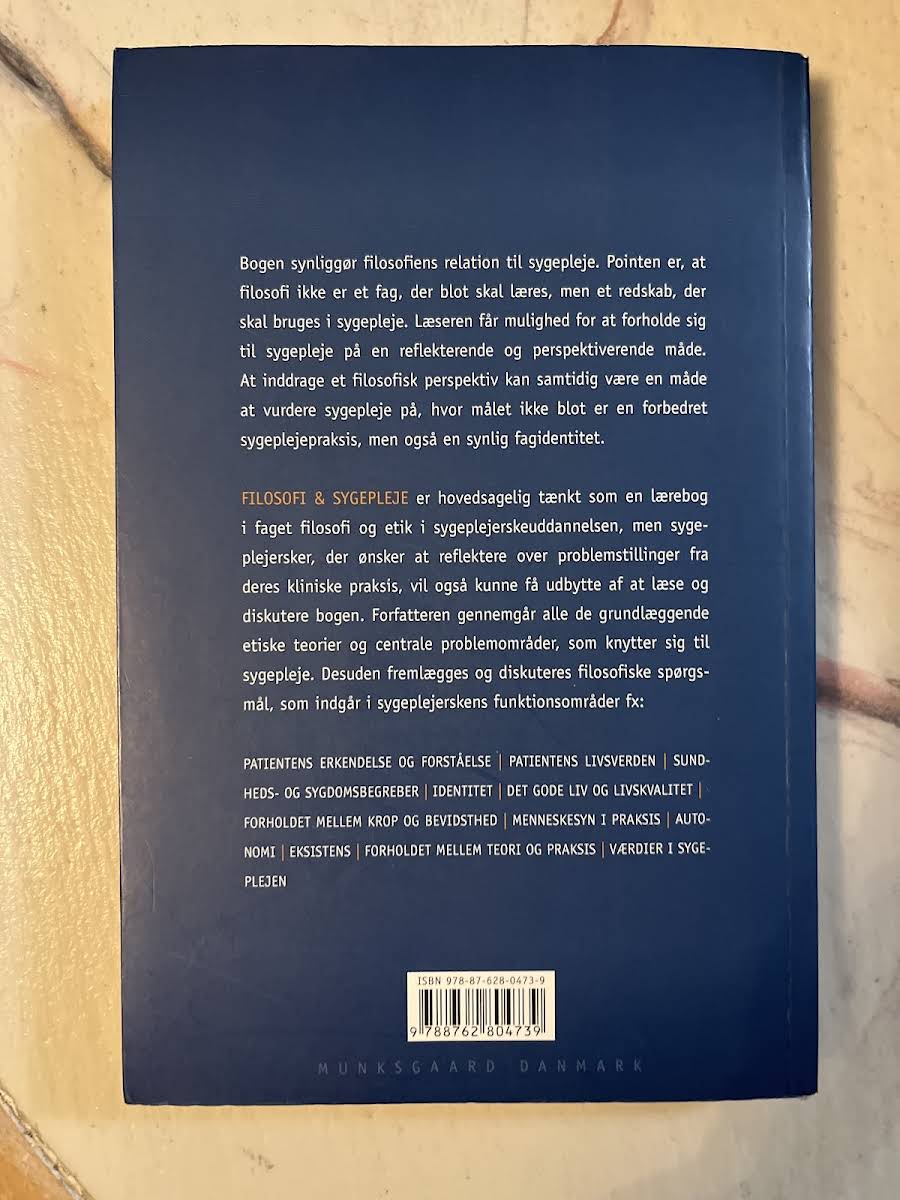"Filosofi & sygepleje" udforsker, hvordan filosofiske perspektiver kan berige og udfordre den praktiske sygepleje. Bogen understreger, at filosofi ikke blot er et teoretisk fag, men et redskab, der aktivt kan anvendes i sygeplejepraksis. Med et solidt overblik over de grundlæggende etiske teorier og centrale problemstillinger inden for sygepleje, opfordres læseren til at reflektere over, hvad der præger den professionelle identitet. Forfatteren, Jacob Birkler, præsenterer en række væsentlige filosofiske og etiske emner, som blandt andet omhandler patientens livsverden, sundheds- og sygdomsbegreber samt forholdet mellem teori og praksis. Designet til at fungere som en lærebog i faget "Filosofi og etik" for sygeplejestuderende, rummer bogen også perspektiver, der er relevante for den erfarne sygeplejerske, der ønsker at opnå en dybere forståelse af sit fag. Udgivet i 2003 af Munksgaard og præsenteret i et håndgribeligt paperbackformat, giver "Filosofi & sygepleje" et inspirerende indblik i, hvordan filosofien kan forme og forny sygeplejeprofessionen.