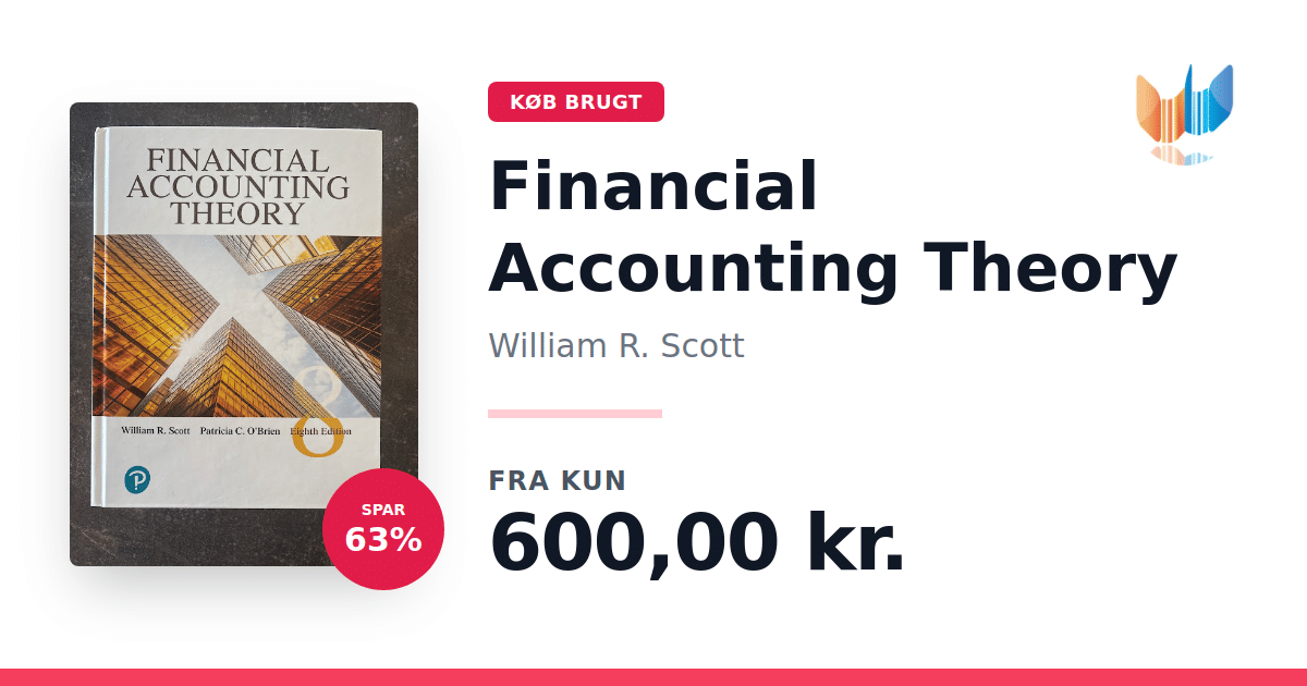 Lige nu kan du købe "Financial Accounting Theory" af William R. Scott til kun 600,00 kr. Du sparer hele 63% af nyprisen! Bogen du ser her er brugt, og i perfekt stand. Vi har i øjeblikket 2 eksemplarer til salg af "Financial Accounting Theory", så husk at se de forskellige udgaver.