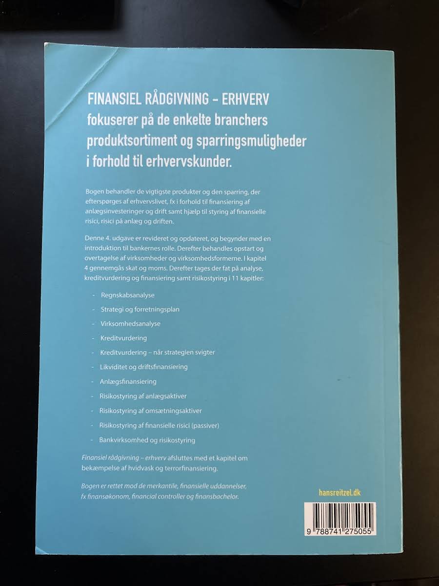 "Finansiel rådgivning – erhverv" er en praksisorienteret lærebog, der giver et solidt indblik i de finansielle løsninger og rådgivningsmuligheder, som erhvervslivet efterspørger. Denne 4. udgave er omhyggeligt revideret og tilpasset tidens krav, herunder de seneste ændringer vedrørende hvidvaskbekæmpelse. Bogen henvender sig primært til studerende på de merkantile og finansielle uddannelser, såsom finansøkonom, financial controller og finansbachelor. Lærebogen dykker ned i bankernes rolle, opstart og overtagelse af virksomheder samt de forskellige virksomhedsformer, der præger erhvervslivet. Med en klar opdeling af emner som skat, moms, analyse, kreditvurdering og risikostyring, præsenterer bogen de vigtigste finansielle produkter og de metoder, der understøtter rådgivningen ved finansiering af anlægsinvesteringer og drift. Det praktiske fokus og de relevante emner gør "Finansiel rådgivning – erhverv" til et uundværligt redskab for alle, der ønsker en fordybelse i emnets kompleksitet og anvendelighed.