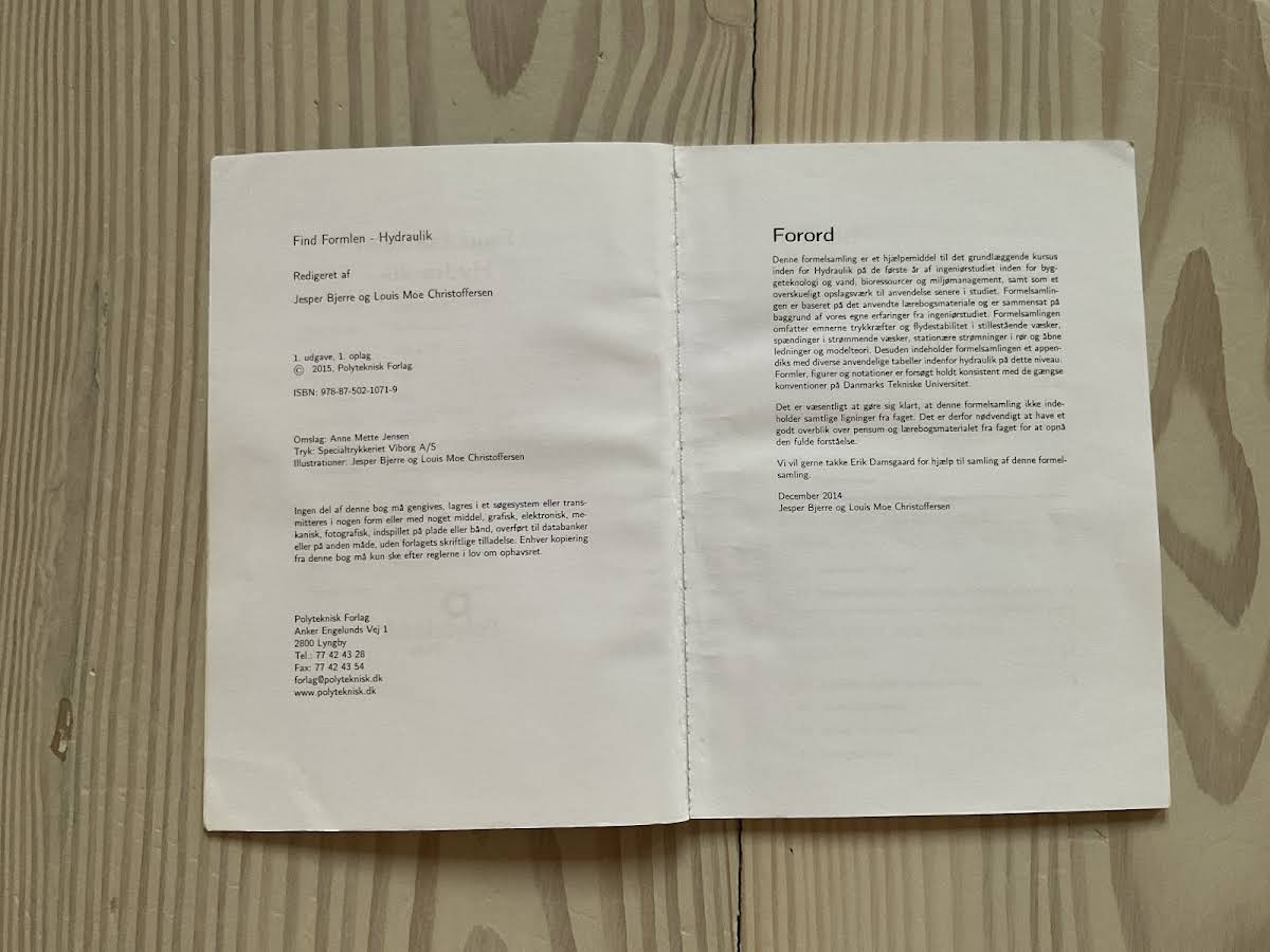 Find Formlen - Hydraulik er en formelsamling, skrevet af studerende for studerende. Denne praktiske guide samler de essentielle formler, som du har brug for gennem hele dit hydraulikstudie. Samlingen er designet til øjeblikkeligt at hjælpe, når formlen skal findes igen – uanset om den lige er glemt eller blot behøver en hurtig opfriskning. Med udgangspunkt i det anvendte lærebogsmateriale og forfatternes egne erfaringer fra ingeniørstudiet, dækker bogen de fundamentale emner inden for hydraulik. Du finder nøje udvalgte formler til trykkræfter, ydestabilitet i væsker, spændinger i strømmende væsker samt stationære strømninger i både rør og åbne ledninger. Derudover indeholder bogen et appendiks med diverse anvendelige tabeller, der understøtter din forståelse af de hydrauliske principper. Find Formlen - Hydraulik præsenterer formler og notationer, der er afstemt efter de gængse konventioner på Danmarks Tekniske Universitet – et uundværligt opslagsværk til både studiebrug og senere anvendelse. Med sine 43 sider er denne første udgave fra 2015 et kompakt og overskueligt hjælpemiddel, der gør de komplekse emner inden for hydraulik mere tilgængelige for studerende.