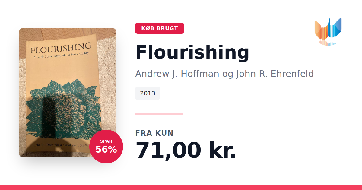 Lige nu kan du købe "Flourishing" af Andrew J. Hoffman og John R. Ehrenfeld til kun 71,00 kr. Du sparer hele 56% af nyprisen! Bogen du ser her er brugt, og i god stand. Vi har i øjeblikket kun et enkelt eksemplar til salg af "Flourishing", så slå til mens du kan!