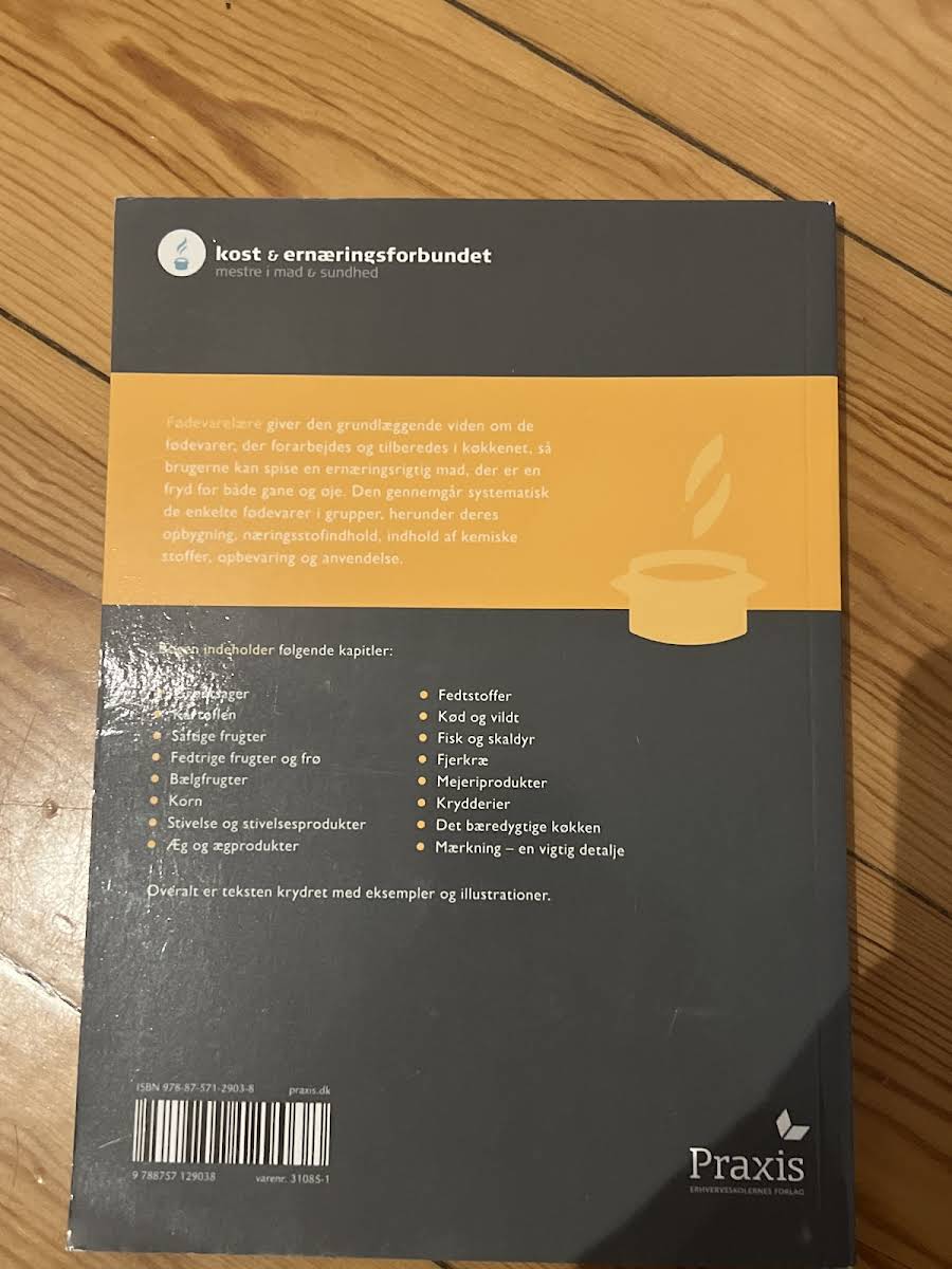 Fødevarelære tilbyder en grundig introduktion til de forskellige fødevarer, der forarbejdes og tilberedes i køkkenet, og hjælper med at lægge fundamentet for en ernæringsrigtig kost, der både tiltaler ganen og øjet. Bogen præsenterer fødevarer systematisk inddelt efter grupper og beskriver deres opbygning, næringsstofindhold, kemiske stoffer, opbevaring og anvendelse. Denne strukturerede tilgang sikrer, at læseren får et klart overblik over, hvordan hver fødevare bedst bidrager til en sund og varieret kost. Omfattende kapitler dækker emner som grøntsager, kartoflen, saftige frugter, fedtrige frugter og frø, bælgfrugter, korn, stivelse og stivelsesprodukter, æg og ægprodukter, fedtstoffer, kød og vildt, fisk og skaldyr, fjerkræ, mejeriprodukter, samt krydderier. Derudover behandles det bæredygtige køkken og mærkning, idet teksten løbende understøttes af illustrative eksempler, som understøtter og klargør stoffets forståelighed.