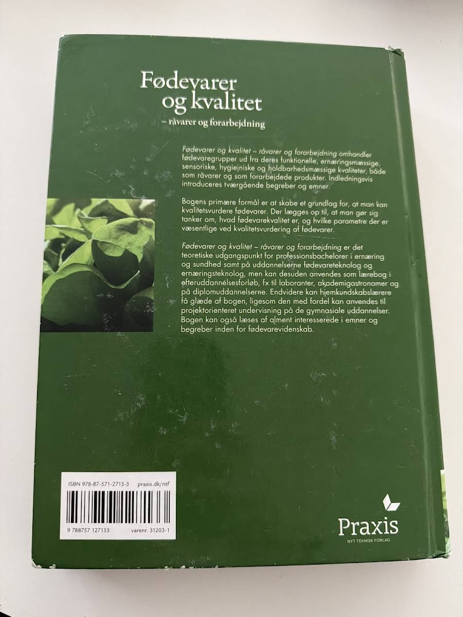 "Fødevarer og kvalitet – råvarer og forarbejdning" er en grundigt gennemarbejdet bog, der sætter fokus på at give læseren et solidt fundament for at kunne vurdere fødevares kvalitet. Bogen belyser centrale problemstillinger omkring, hvad fødevarekvalitet indebærer, og præsenterer de væsentlige parametre, man skal forholde sig til i kvalitetsvurderingen. Indholdet dykker ned i de forskellige fødevaregrupper – fra kød og fisk til mejeriprodukter – og behandler emner som funktionelle og ernæringsmæssige aspekter, sensoriske egenskaber, hygiejne og holdbarhed, både som råvarer og som forarbejdede produkter. Denne strukturerede tilgang gør bogen til et oplagt redskab for studerende og fagfolk inden for ernæring, sundhed, ernæringsteknologi og fødevareteknologi. Med sit omfattende faglige indhold og detaljerede behandling af fødevarekvalitet er bogen ideel som både lærebog og opslagsværk. Udgivet i 2010 af Praxis – Nyt Teknisk Forlag, giver den et opdateret overblik, der understøtter uddannelsesforløb og professionel praksis inden for fødevareområdet."