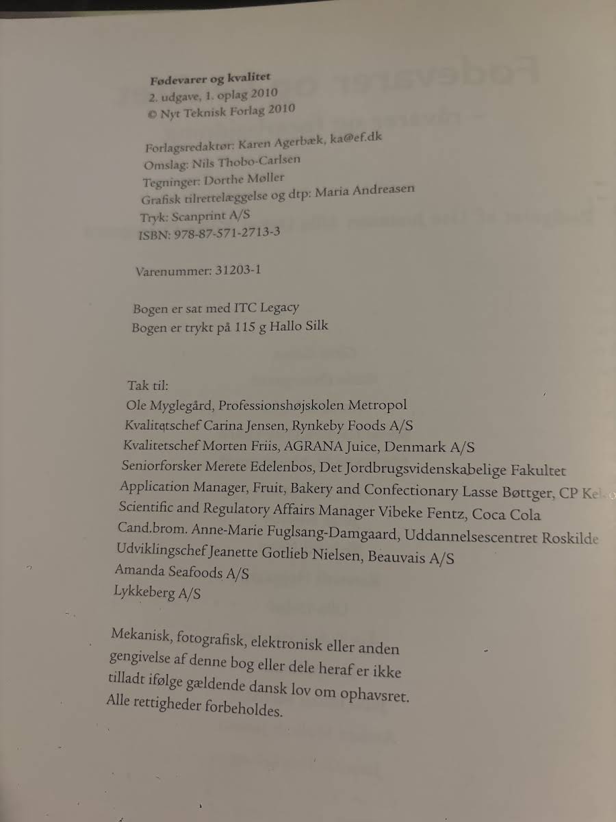 "Fødevarer og kvalitet – råvarer og forarbejdning" er en grundigt gennemarbejdet bog, der sætter fokus på at give læseren et solidt fundament for at kunne vurdere fødevares kvalitet. Bogen belyser centrale problemstillinger omkring, hvad fødevarekvalitet indebærer, og præsenterer de væsentlige parametre, man skal forholde sig til i kvalitetsvurderingen. Indholdet dykker ned i de forskellige fødevaregrupper – fra kød og fisk til mejeriprodukter – og behandler emner som funktionelle og ernæringsmæssige aspekter, sensoriske egenskaber, hygiejne og holdbarhed, både som råvarer og som forarbejdede produkter. Denne strukturerede tilgang gør bogen til et oplagt redskab for studerende og fagfolk inden for ernæring, sundhed, ernæringsteknologi og fødevareteknologi. Med sit omfattende faglige indhold og detaljerede behandling af fødevarekvalitet er bogen ideel som både lærebog og opslagsværk. Udgivet i 2010 af Praxis – Nyt Teknisk Forlag, giver den et opdateret overblik, der understøtter uddannelsesforløb og professionel praksis inden for fødevareområdet."