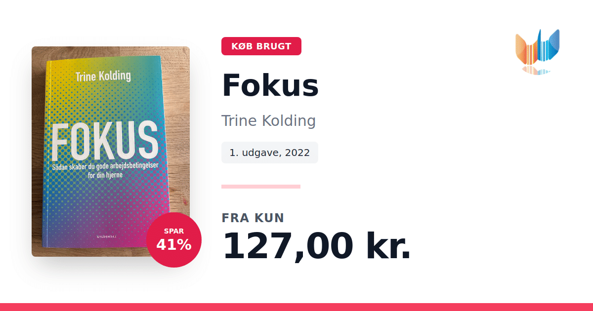 Tidsekspert og -coach Trine Kolding inviterer dig i bogen Fokus: Sådan skaber du gode arbejdsbetingelser for din hjerne til at slippe tankemylder, overspringshandlinger og multitasking for i stedet at finde og bevare dit indre fokus. Alt for længe har vi jagtet mere tid, men det er fokus, der virkelig afgør, hvad vi når. Uden evnen til at koncentrere os bliver selv mere tid en undvigende drøm, og vi ender mentalt fraværende i vores egen hverdag. Vi lever i en verden, hvor opmærksomheden konstant presses af notifikationer, indtryk og krav fra alle sider. Under dette bombardement reagerer hjernen med overstimulering, hvilket gør det svært at bevare roen, lære nyt og fuldføre vigtige opgaver. Med konkrete redskaber og øvelser viser Trine Kolding, hvordan du skaber ro omkring dine tanker, styrker din koncentration og øger både effektivitet og velvære. Fokus bliver din guide til at bevare nærvær, få mere overskud og afslutte de projekter, der virkelig betyder noget.