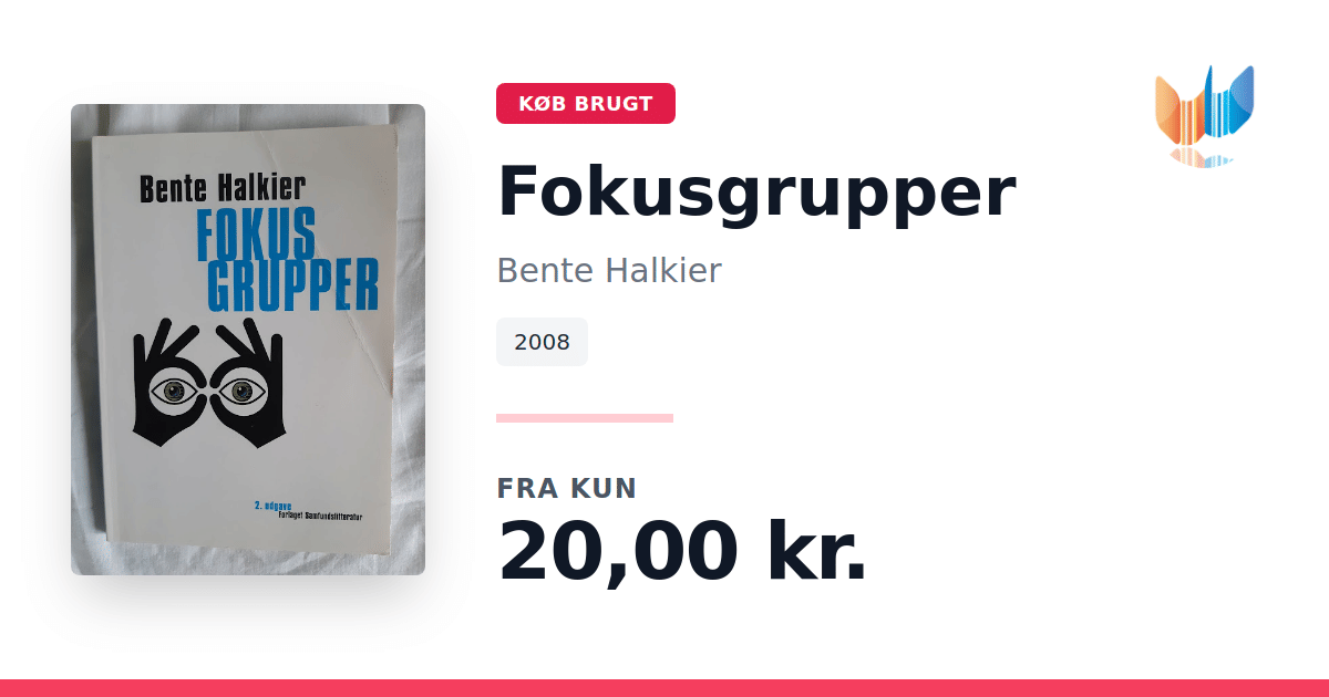Lige nu kan du købe "Fokusgrupper" af Bente Halkier til kun 20,00 kr. Bogen du ser her er brugt, og i god stand. Vi har i øjeblikket 3 eksemplarer til salg af "Fokusgrupper", så husk at se de forskellige udgaver.
