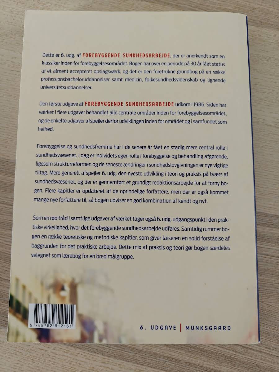 Forebyggende sundhedsarbejde er en anerkendt lærebog, der siden sin første udgivelse i 1986 har markeret sig som et centralt opslagsværk inden for forebyggelsesområdet. I denne sjette udgave, udgivet i 2016 af Gyldendal, reflekteres den nyeste udvikling inden for sundhedsvæsenet både i teori og praksis. Bogen dykker ned i de praktiske realiteter, hvor forebyggende sundhedsarbejde udfolder sig, og tilbyder en kombination af teoretiske og metodiske kapitler. Med bidrag fra både de oprindelige forfattere og nye stemmer formår værket at levere en solid baggrundsforståelse, der gør det til et uundværligt redskab for en bred målgruppe blandt sundhedsprofessionelle og studerende.