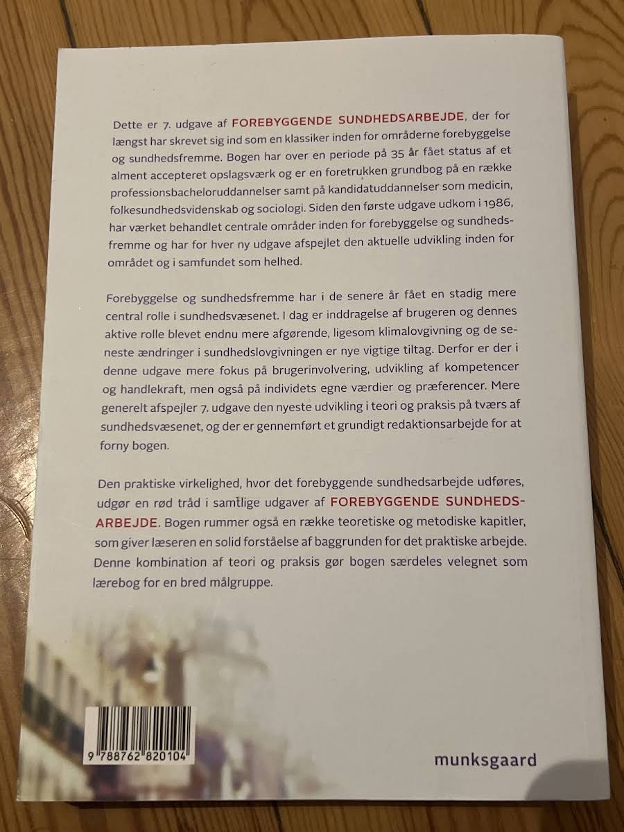 Forebyggende sundhedsarbejde i 7. udgave er et solidt og anerkendt opslagsværk inden for forebyggelse og sundhedsfremme. Med rødder helt tilbage til den første udgave i 1986 har bogen over 35 år opnået status som en klassiker, der dækker de centrale områder i feltet og fungerer som en foretrukken grundbog for både professionsbachelor- og kandidatuddannelser, herunder medicin, folkesundhedsvidenskab og sociologi. Denne udgave afspejler den seneste udvikling i sundhedsvæsenet med et øget fokus på brugerinvolvering, kompetenceudvikling og individets værdier. I takt med nye tiltag som klimalovgivning og ændringer i sundhedslovgivningen er der foretaget et grundigt redaktionsarbejde for at opdatere teorien og praksis inden for området. Med en kombination af praktiske cases og teoretiske samt metodiske kapitler giver bogen læseren et solidt fundament for at forstå og anvende det forebyggende sundhedsarbejde i forskellige sammenhænge.