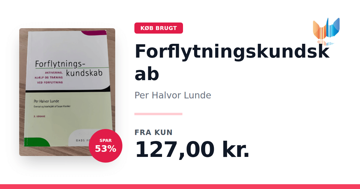 Lige nu kan du købe "Forflytningskundskab" af Per Halvor Lunde til kun 127,00 kr. Du sparer hele 53% af nyprisen! Bogen du ser her er brugt, og i god stand. Vi har i øjeblikket 5 eksemplarer til salg af "Forflytningskundskab", så husk at se de forskellige udgaver.