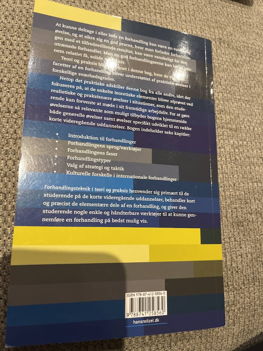 "Forhandlingsteknik" af Anne Bay Nordtorp giver en skarp og praksisnær indføring i forhandlingens mange facetter. Bogen fokuserer på at formidle de essentielle principper, som sikrer, at forhandlingsprocessen resulterer i et tilfredsstillende udfald. Gennem en kombination af teoretiske grundlag og konkrete øvelser tages læseren med på en rejse, der klæder én på til at håndtere forhandlingers udfordringer med selvtillid og præcision. Med et klart og overskueligt fokus introducerer bogen de få, men robuste teknikker, der er nødvendige for at udvikle gode forhandlingsevner. Øvelserne bliver gradvist mere udfordrende og afspejler realistiske situationer, som man kan møde i hverdagen – og de giver læseren en praktisk tilgang til de strategier og taktikker, der er afgørende for en succesfuld forhandling. Denne bog er et uundværligt redskab for alle, der ønsker at mestre kunsten at forhandle.