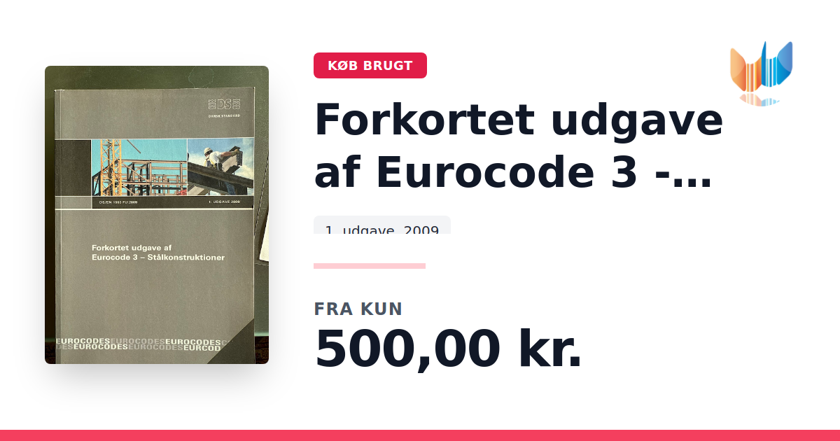 Lige nu kan du købe "Forkortet udgave af Eurocode 3 - stålkonstruktioner" til kun 500,00 kr. Bogen du ser her er brugt, og i perfekt stand. Vi har i øjeblikket kun et enkelt eksemplar til salg af "Forkortet udgave af Eurocode 3 - stålkonstruktioner", så slå til mens du kan!