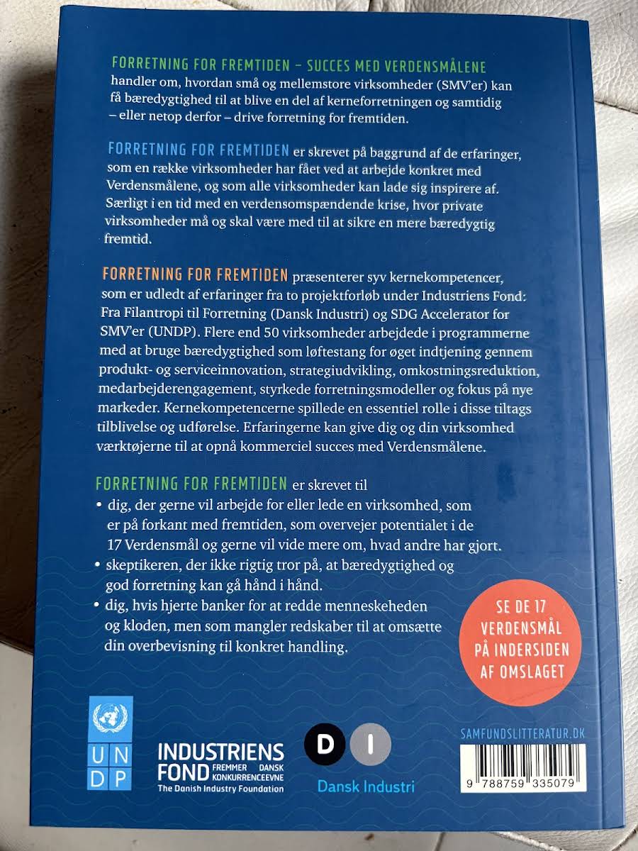 Forretning for fremtiden – Succes med Verdensmålene viser, hvordan små og mellemstore virksomheder kan indlejre bæredygtighed i deres kerneforretning og derved skabe en stærk platform for fremtidig vækst. På baggrund af konkrete erfaringer fra virksomheder, der har arbejdet med Verdensmålene, præsenterer bogen en praktisk tilgang til at forene bæredygtighed og forretningsudvikling i en tid, hvor globale kriser kræver innovative løsninger. Bogen introducerer syv centrale kernekompetencer, udviklet ud fra to projektforløb under Industriens fond, nemlig Filantropi til Forretning og SDG Accelerator. I disse programmer deltog over 50 virksomheder, som brugte bæredygtighed aktivt til at opnå produkt- og serviceinnovation, strategisk udvikling, omkostningsreduktion, øget medarbejderengagement og adgang til nye markeder. Erfaringerne giver værdifulde redskaber til virksomheder, der ønsker at omsætte de 17 Verdensmål til håndgribelig forretningssucces. Forretning for fremtiden henvender sig til ledere og medarbejdere, der ønsker at positionere deres virksomhed i forkant med udviklingen, samt til dem, der søger metoder til at kombinere finansiel performance med en bæredygtig fremtid. Uanset om du er optimistisk udbyder af forandringer eller en kritiker, der mangler konkrete redskaber, byder bogen på inspiration og praktiske løsninger til at omsætte vision til handling.