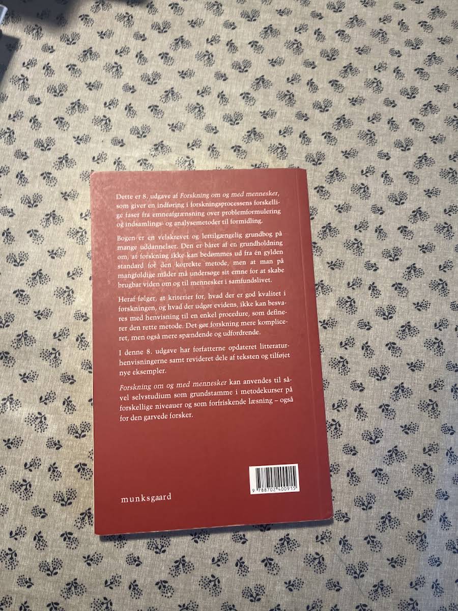 Denne 8. udgave af Forskning om og med mennesker introducerer læseren til forskningsprocessens mange facetter – fra emneafgrænsning og problemformulering til valg af indsamlings- og analysemetoder samt formidling af resultater. Bogen lægger vægt på, at der ikke findes én universel metode til at vurdere god forskning. I stedet understreges, at alsidige tilgange er nødvendige for at opnå relevant og anvendelig viden om mennesker i samfundet. Med opdaterede litteraturhenvisninger, tilrettede tekstafsnit og nye illustrative eksempler forbliver denne udgave både tidssvarende og inspirerende for både studerende og erfarne forskere. Den lettilgængelige fremstilling gør bogen ideel til selvstudium samt som grundlæggende læsning i metodekurser på forskellige uddannelsesniveauer.