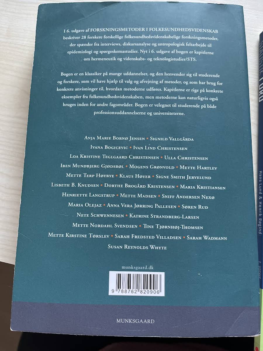 I 6. udgave af Forskningsmetoder i folkesundhedsvidenskab præsenterer 28 forskere en alsidig række af folkesundhedsvidenskabelige metoder. Metoderne spænder bredt fra interviews, diskursanalyse og antropologisk feltarbejde til epidemiologi og spørgeskemastudier. Denne udgave introducerer desuden nye kapitler med fokus på hermeneutik samt videnskabs- og teknologistudier/STS. Bogen henvender sig til både studerende og forskere, der søger vejledning i valget og anvendelsen af metoder inden for folkesundhedsvidenskaben. De konkrete eksempler, der gennemstrømmer kapitlerne, gør det nemt at omsætte teori til praksis – et værktøj, der også kan anvendes i andre fagområder. Forskningsmetoder i folkesundhedsvidenskab er en uundværlig ressource på både professionsuddannelser og universiteter.
