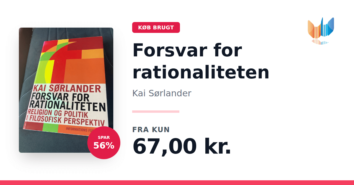 Lige nu kan du købe "Forsvar for rationaliteten" af Kai Sørlander til kun 67,00 kr. Du sparer hele 56% af nyprisen! Bogen du ser her er brugt, og i god stand. Vi har i øjeblikket kun et enkelt eksemplar til salg af "Forsvar for rationaliteten", så slå til mens du kan!