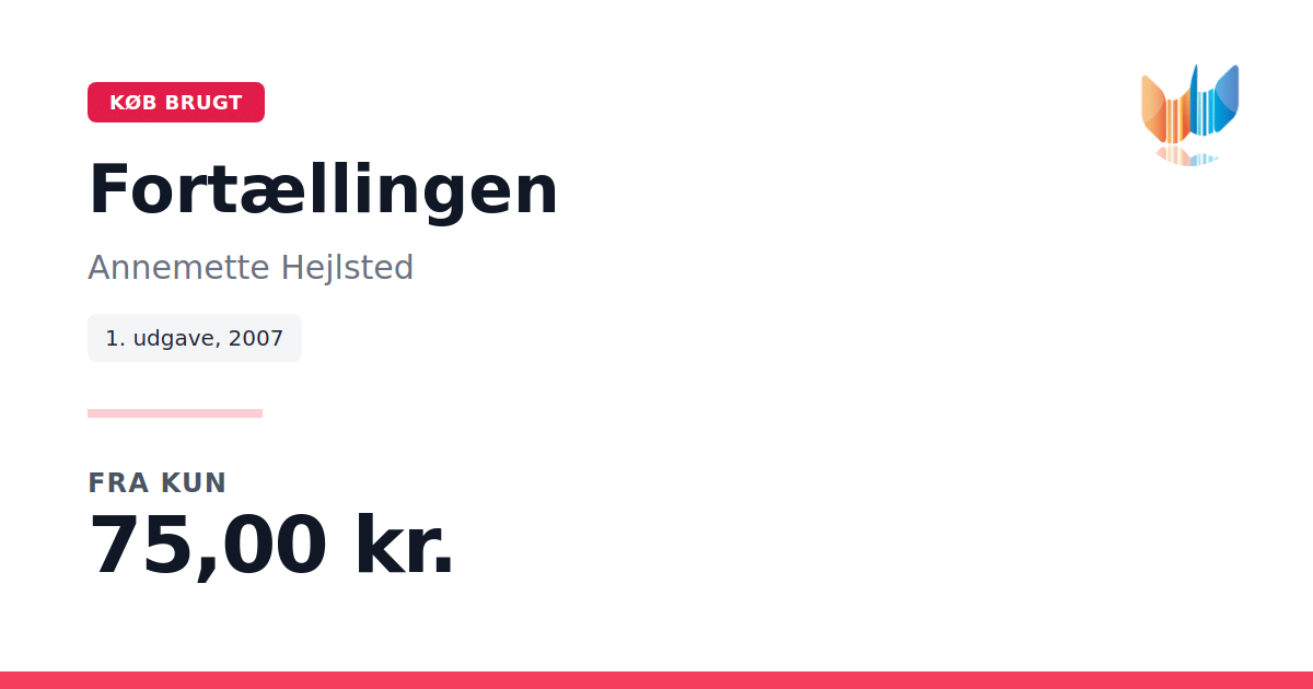 Lige nu kan du købe "Fortællingen" af Annemette Hejlsted til kun 75,00 kr. Bogen du ser her er brugt, og i god stand. Vi har i øjeblikket kun et enkelt eksemplar til salg af "Fortællingen", så slå til mens du kan!