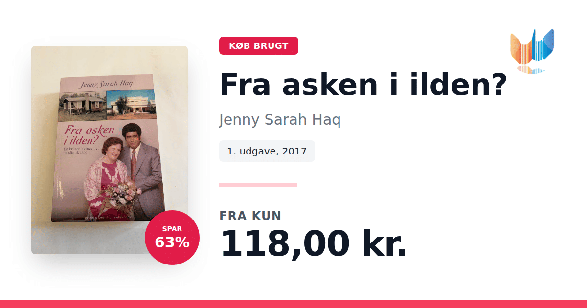 Lige nu kan du købe "Fra asken i ilden?" af Jenny Sarah Haq til kun 118,00 kr. Du sparer hele 63% af nyprisen! Bogen du ser her er brugt, og i perfekt stand. Vi har i øjeblikket kun et enkelt eksemplar til salg af "Fra asken i ilden?", så slå til mens du kan!